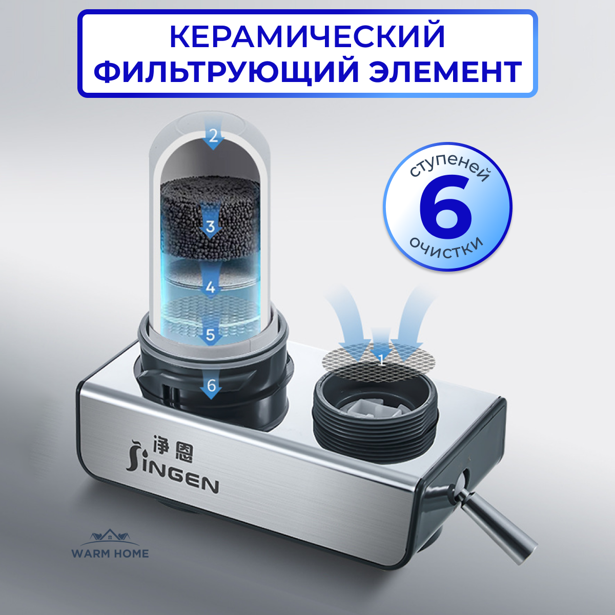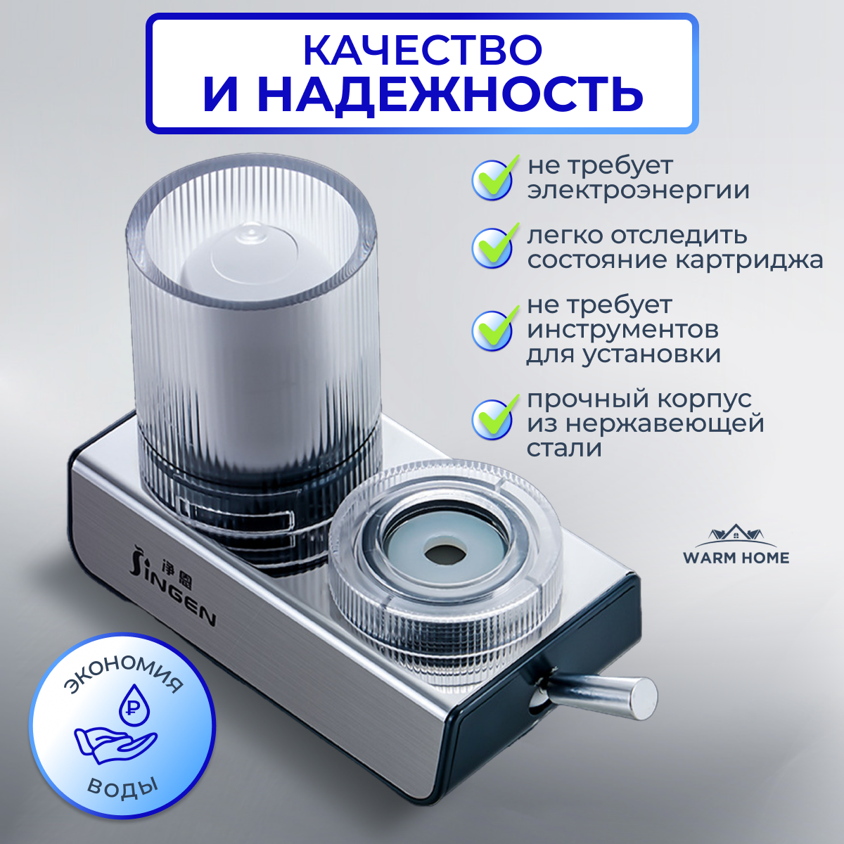 Фильтр для воды на кран , с переключателем и аэратором , проточный и универсальный . Warm Home . интересное: