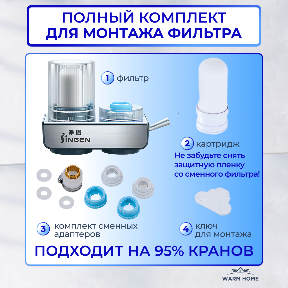 Сменный картридж для фильтра для воды на кран для холодной и горячей воды Warm Home
