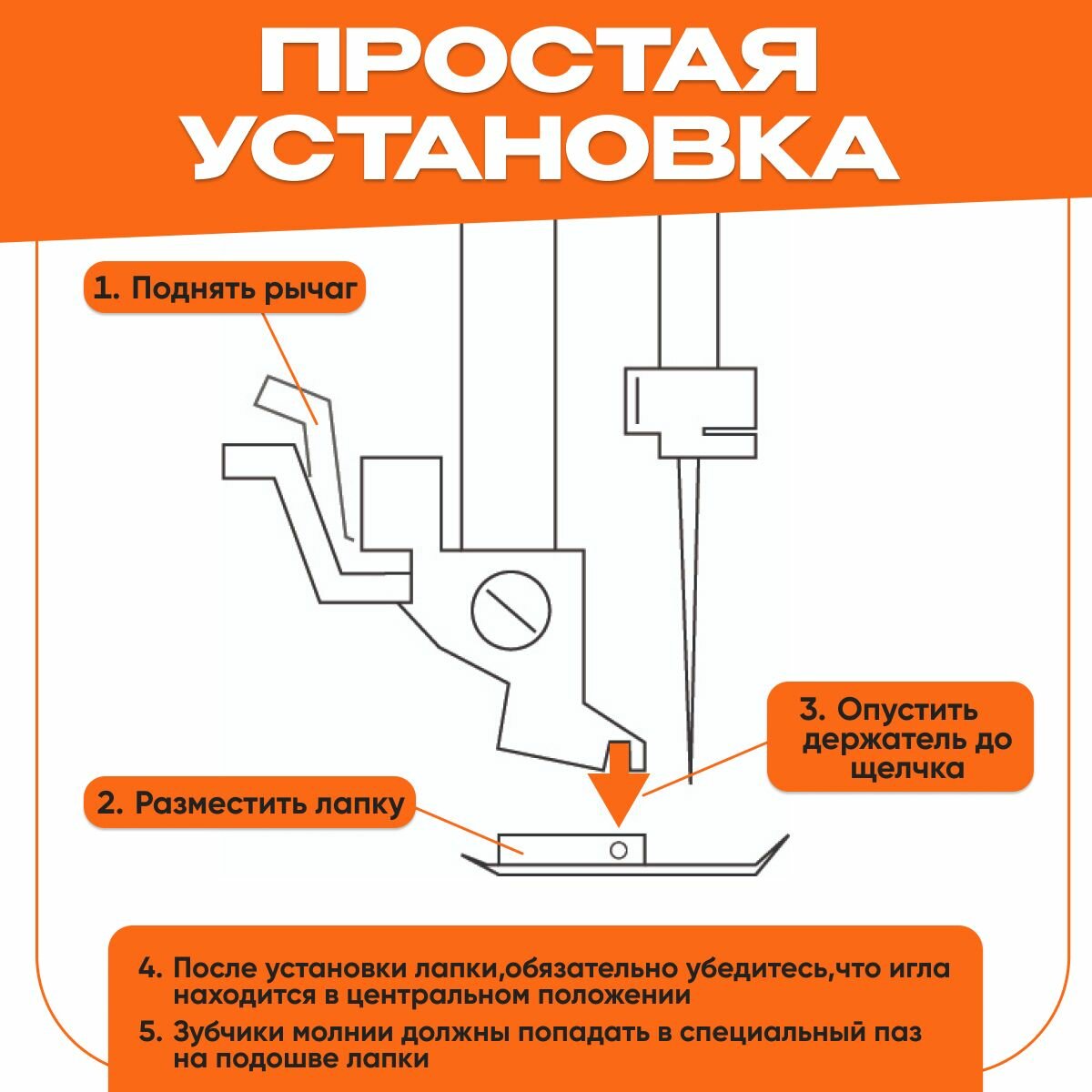 Лапка однорожковая для швейной машины для вшивания молнии, аксессуар для шитья и рукоделия, инструмент для творчества