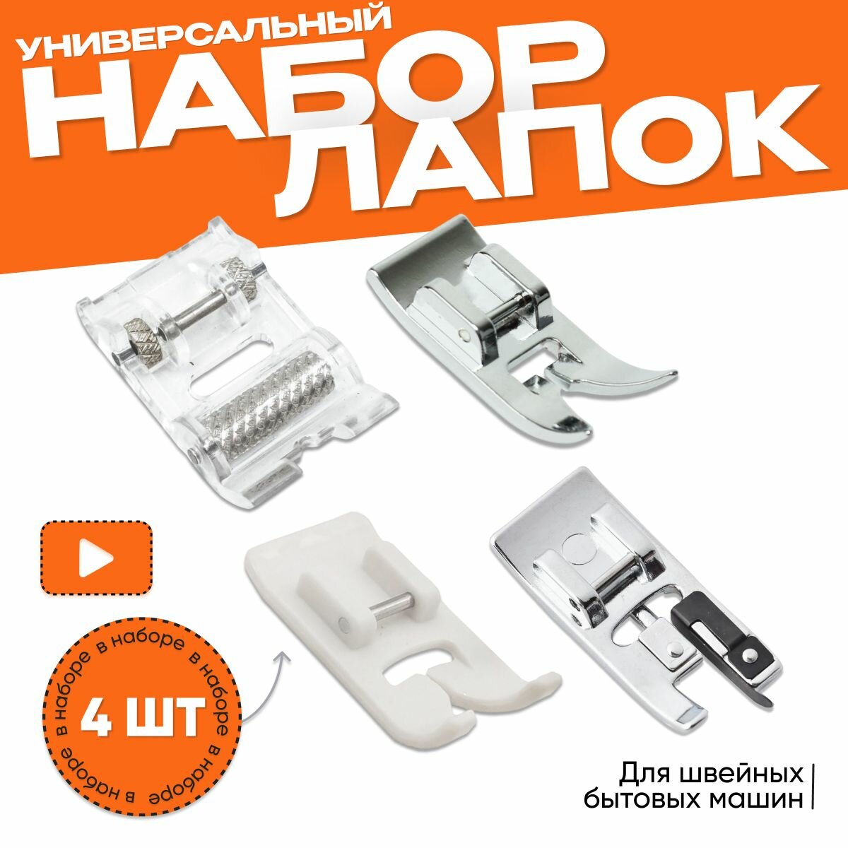 Купить Набор лапок для швейных машин. Лапка роликовая, универсальная (зигзаг), оверлочная, тефлоновая, 4шт