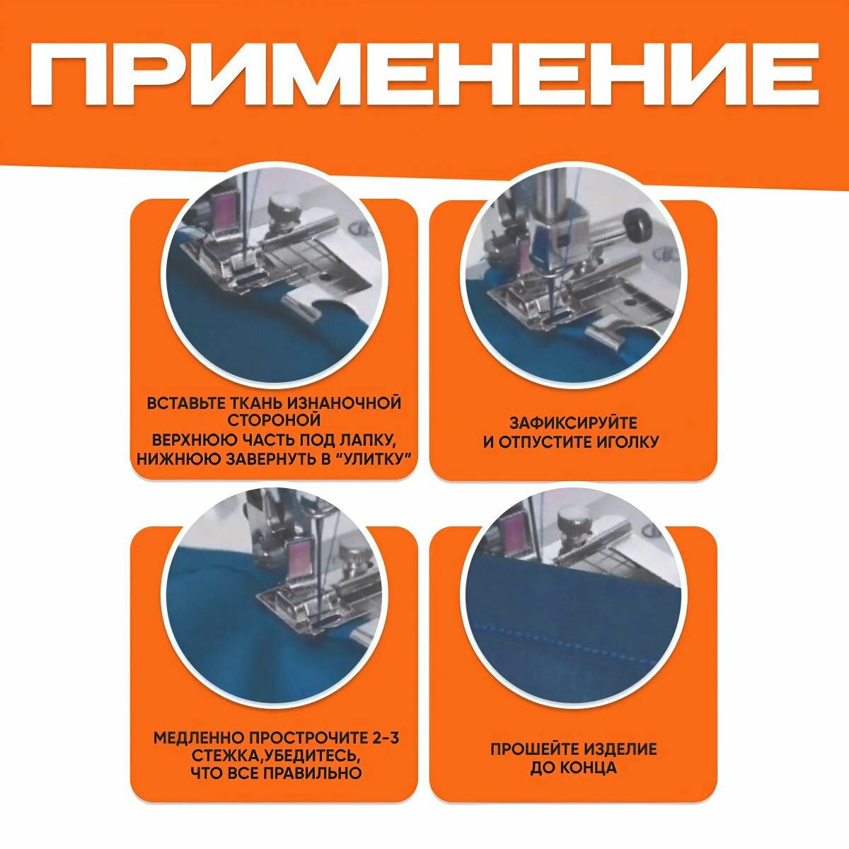 Лапка для швейных машин подрубочная 4/8" (13мм), лапка для подгибки края, улитка