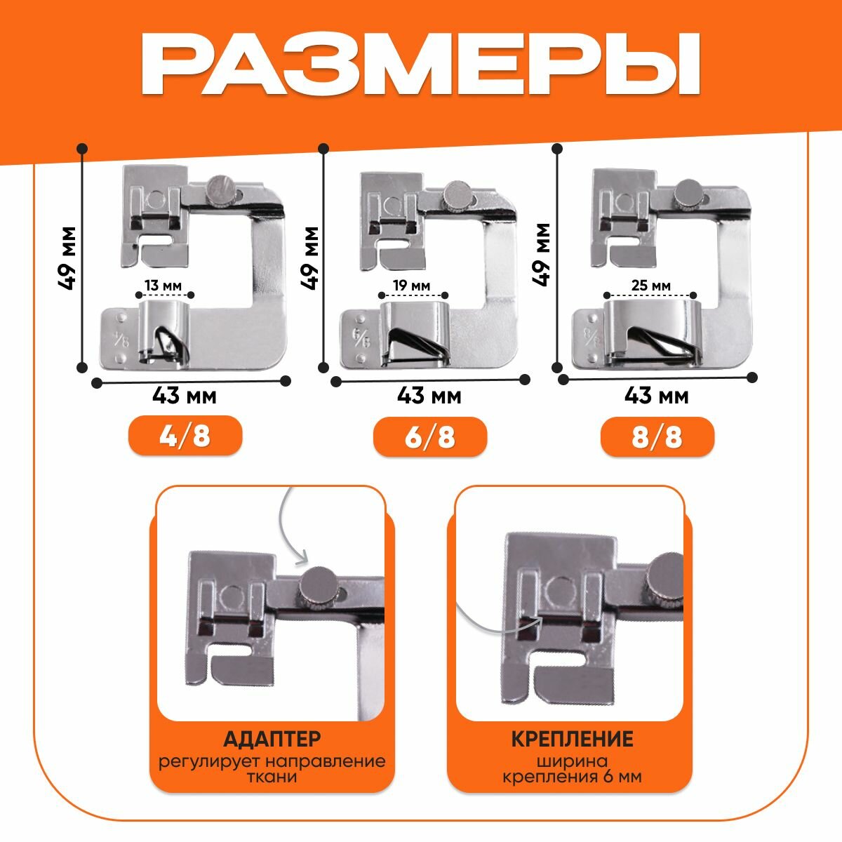 Универсальный набор подрубочных лапок для швейных машин, для подгибки края, лапка с ограничителем 8 шт