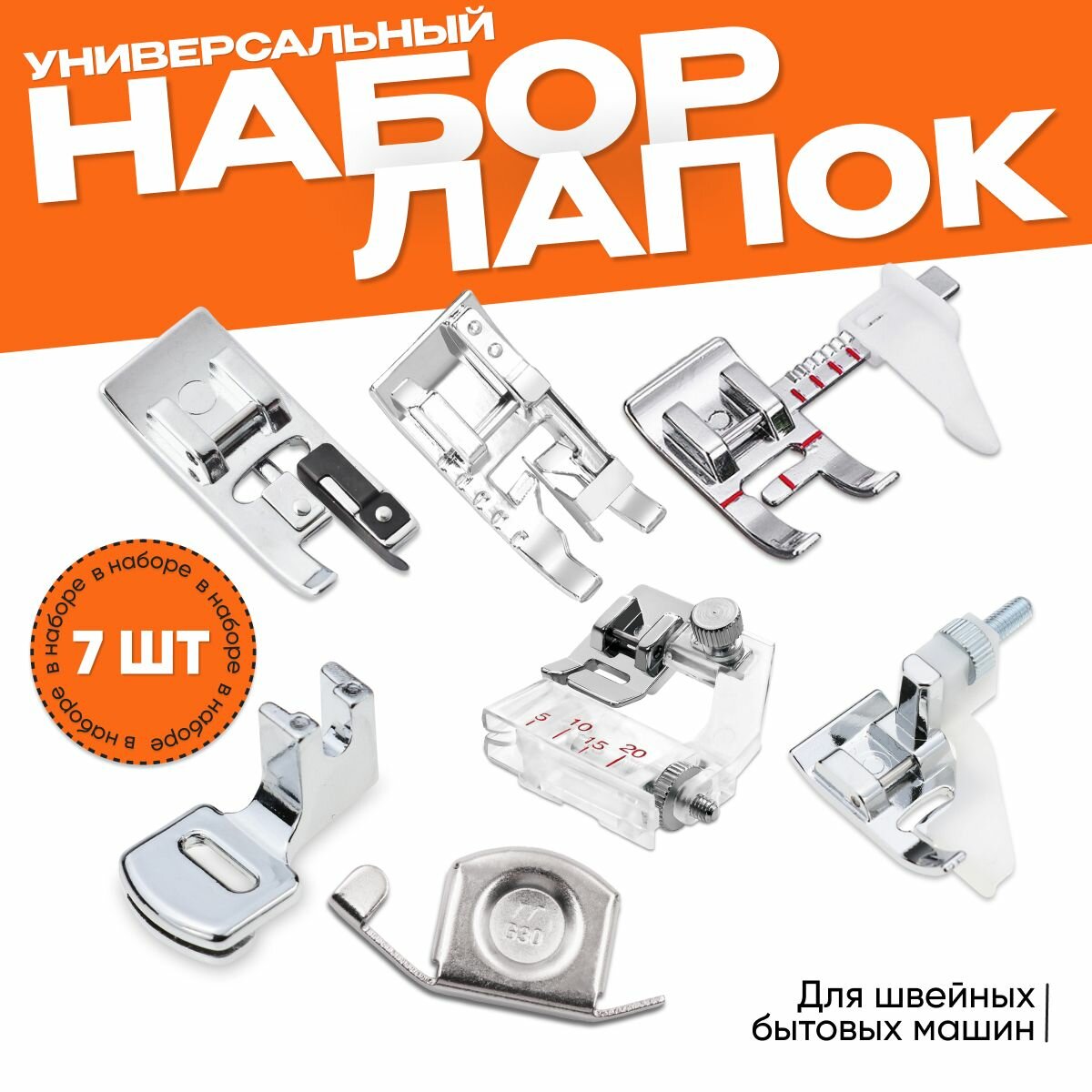 Купить Универсальный набор лапок для швейной машины. Лапка для косой бейки, для отсрочки по краю, потайного шва, оверлочная, с ограничителем, лапка для присбаривания. 7шт