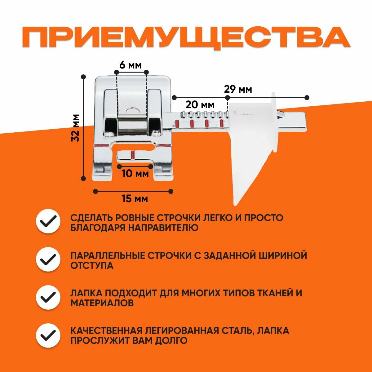 Лапка с ограничителем для бытовой швейной машины, с линейкой для ровной срочки, направляющей для прямого шва