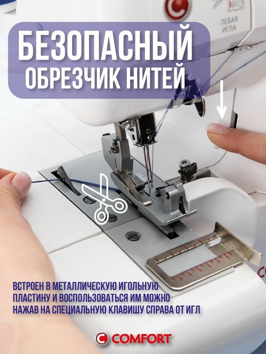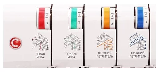 | Особенности | нитеобрезатель, отсек для принадлежностей, цветная маркировка |