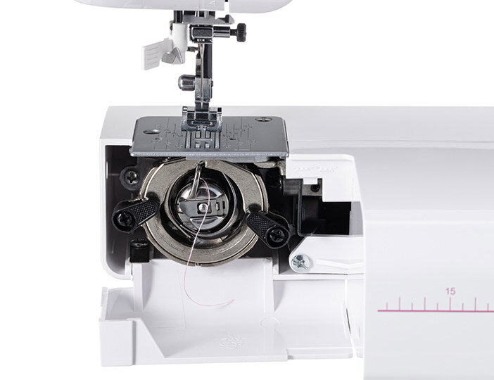 | Подробная комплектация | Шпульки — 4 шт. (3 шт. + 1шт. в машине) Комплект игл ORGAN Двойная игла Отвёртка-ключ Вспарыватель/щёточка для чистки Рамка для петли Направитель для потайного шва Лапка для молнии двухсторонняя Лапка для пришивания пуговиц Мягкий чехол Приставной столик 35*26 см Педаль Инструкция |