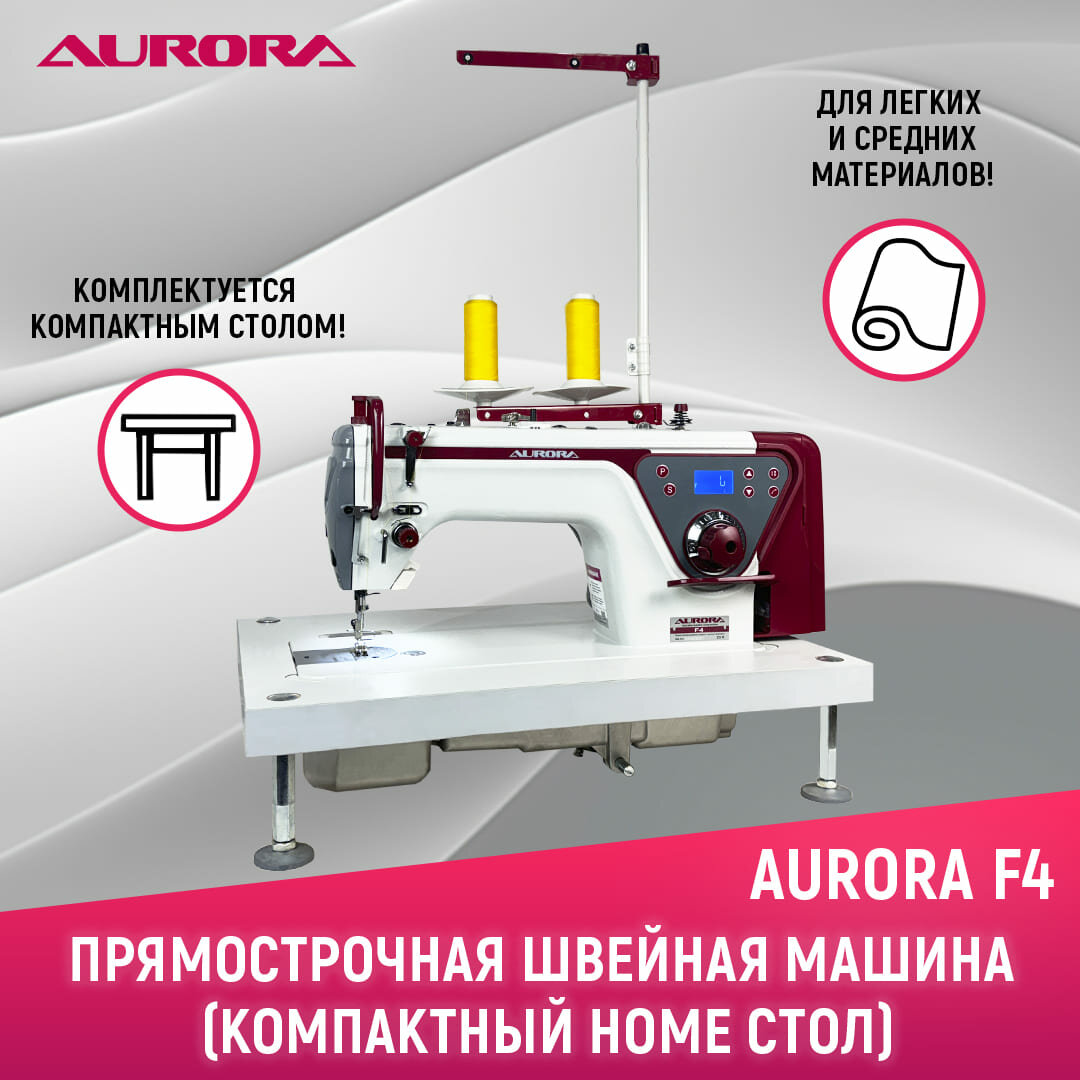 Промышленная прямострочная швейная машина Aurora F4 Home с позиционером иглы с компактным столом столом Aurora интересное: