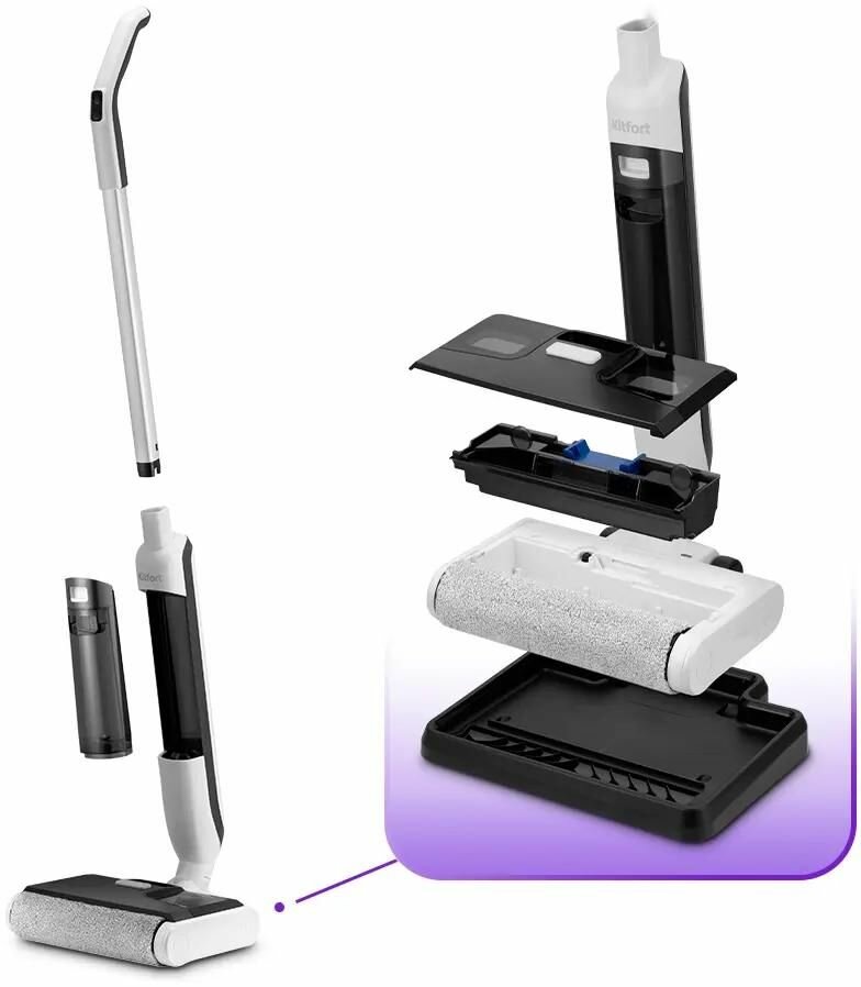Электрошвабра KitFort КТ-5224, 50Вт, белый/черный интересное: