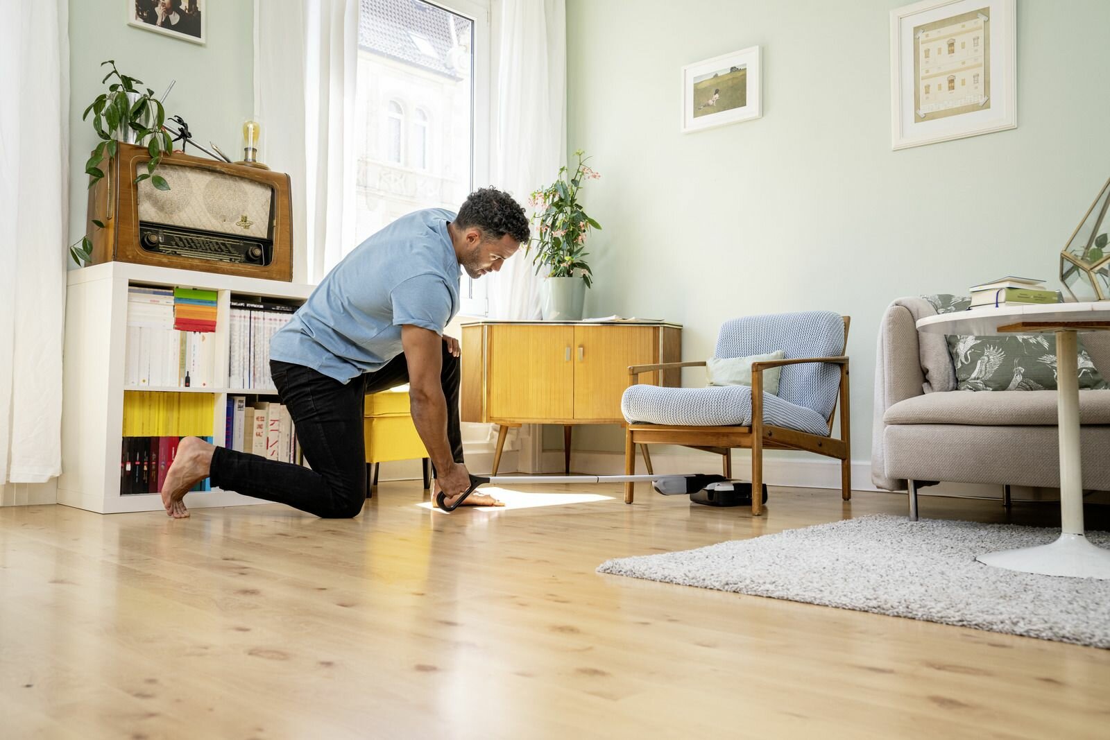 | Минусы: | оставляет разводы на ламинате |