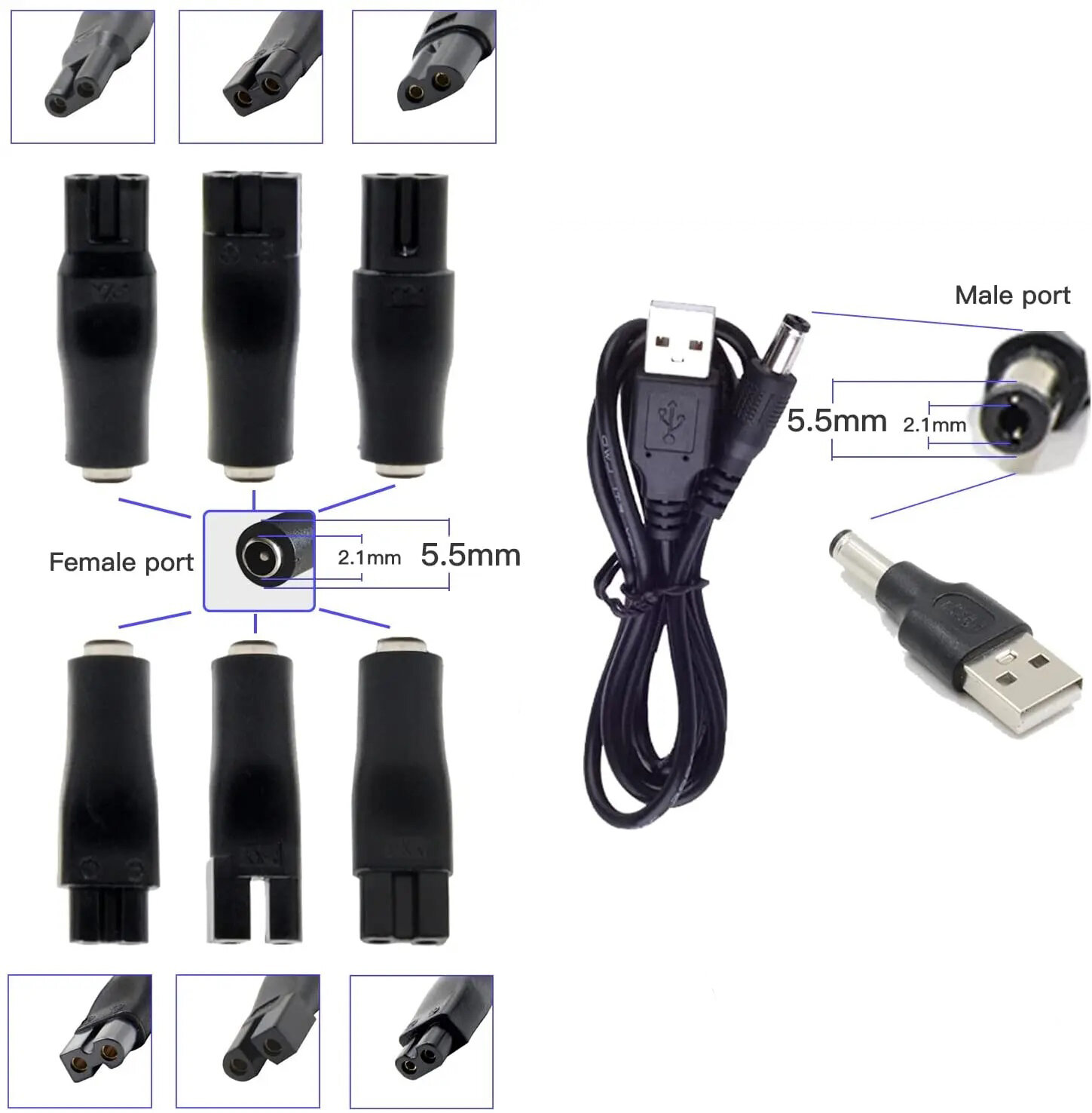 Купить Кабель питания PALMEXX для электробритв универсальный, USB, DC5V, 6 модельных насадок