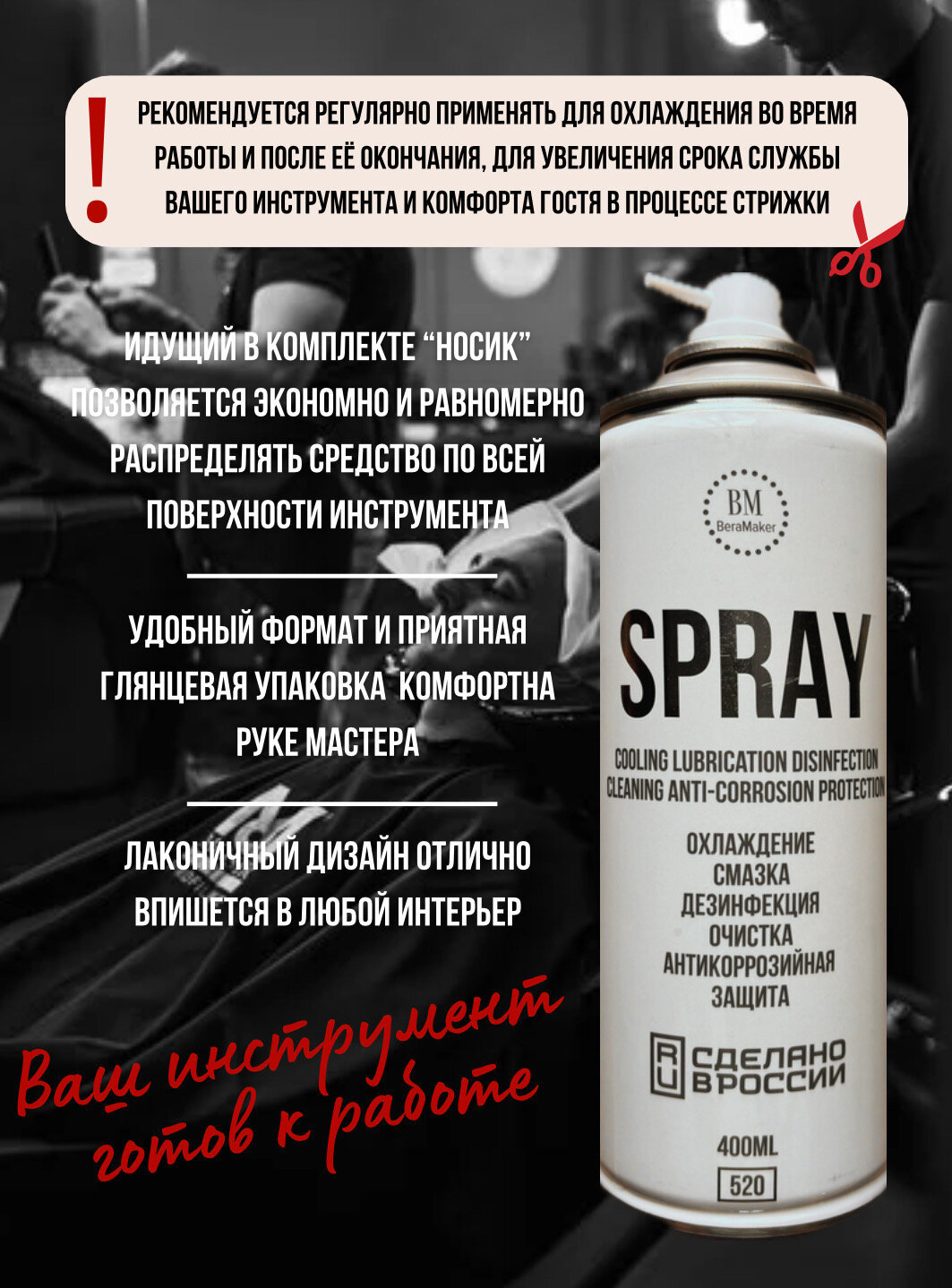Охлаждающий барбер спрей для машинок, ножевых блоков интересное: