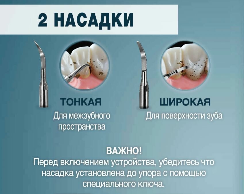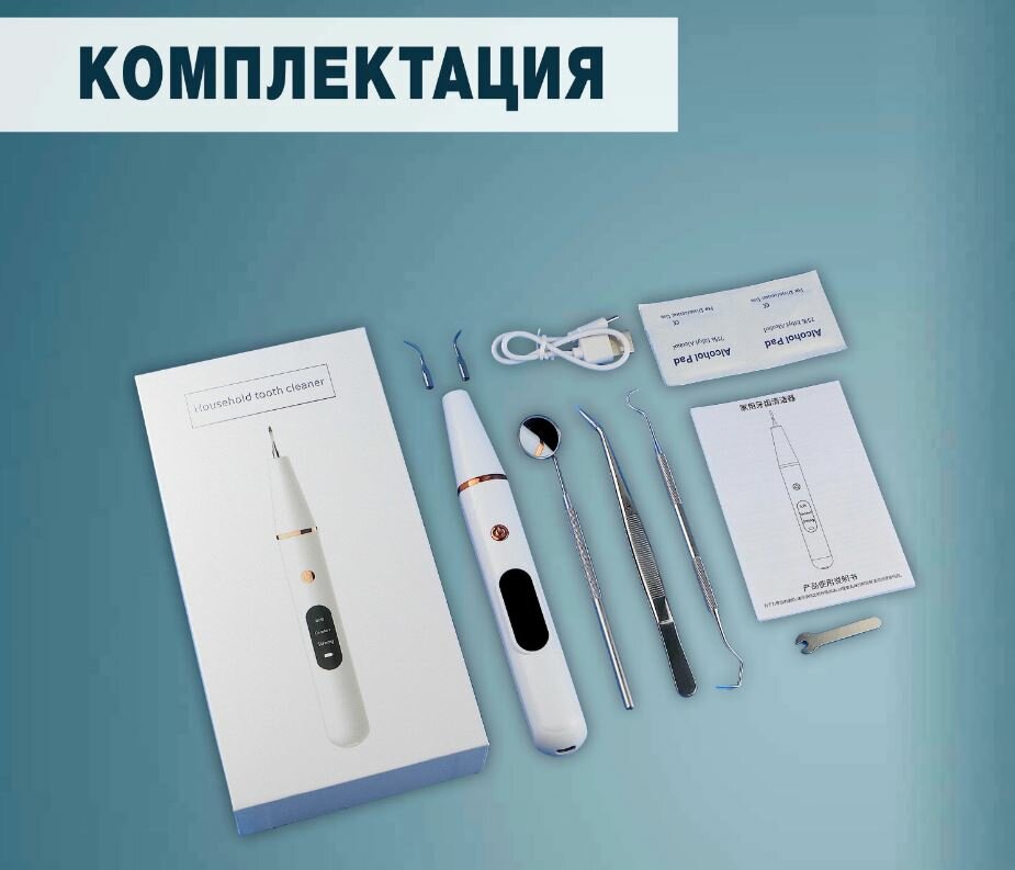 | Подробная комплектация | льтразвуковой ирригатор скалер 1 шт; Насадки из медицинской стали 2 шт + ключ 1 шт; Спиртовые салфетки 2 шт; USB провод 1 шт; Стоматологические инструменты набор 3 шт (скалер, стоматологическое зеркало, пинцет) |