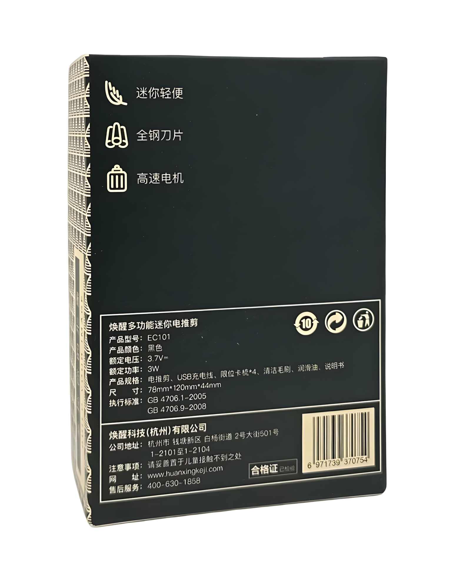Мини машинка для стрижки волос и бороды Huanxing EC101, черная