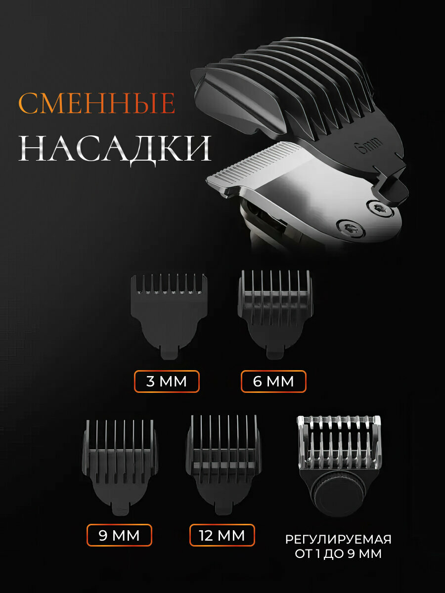 Универсальный триммер для бороды и стрижки волос 10 в 1 King Professional kp-2014, черный интересное: