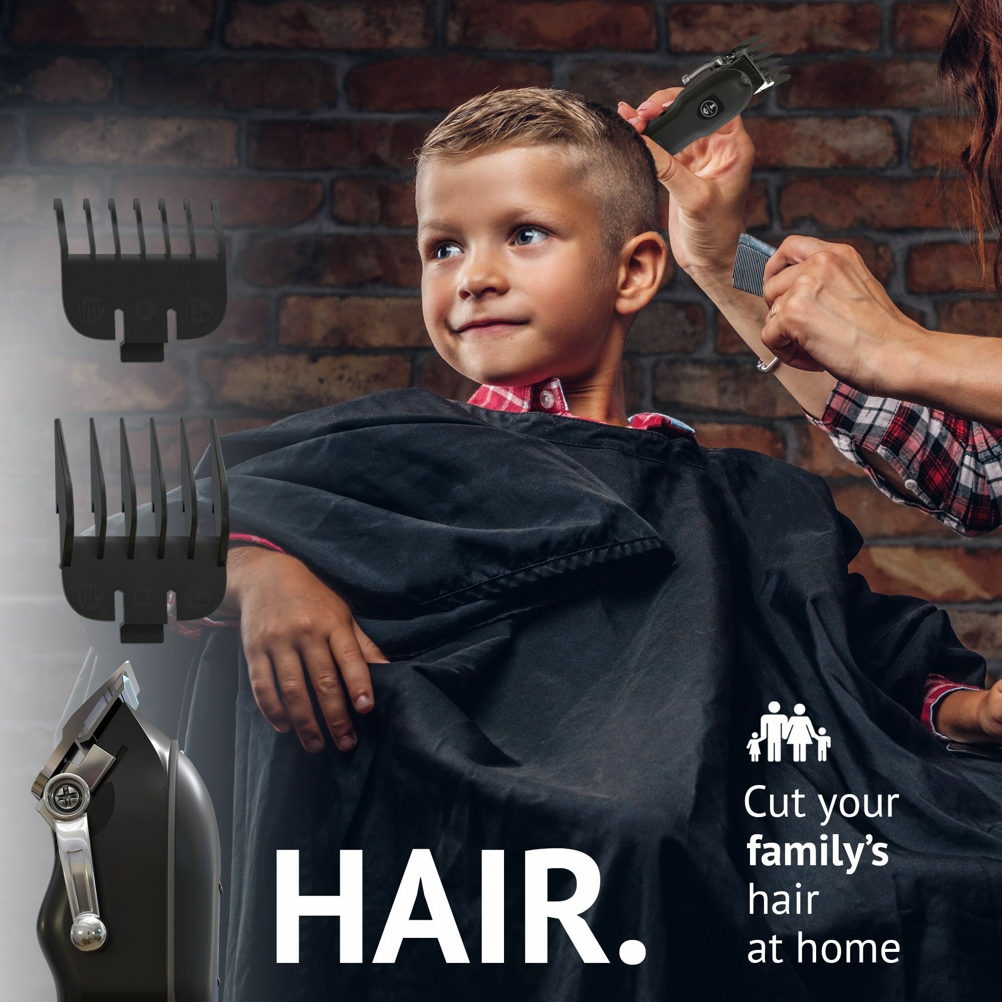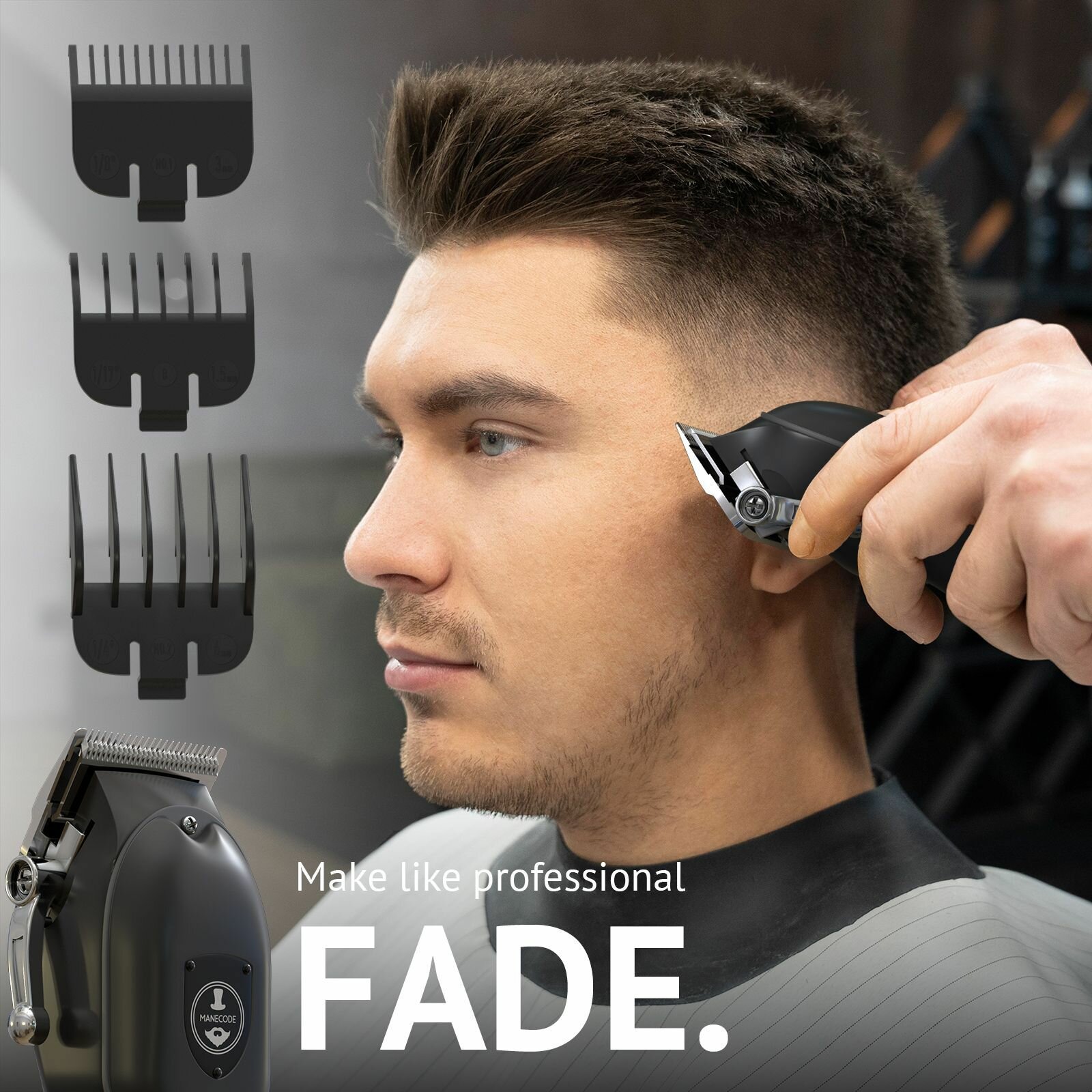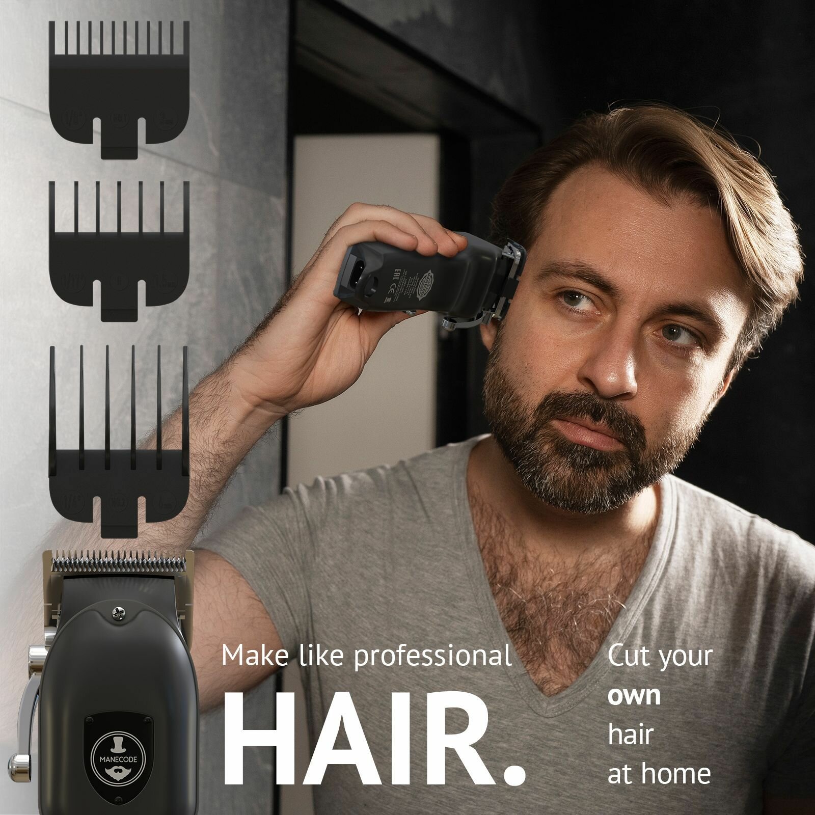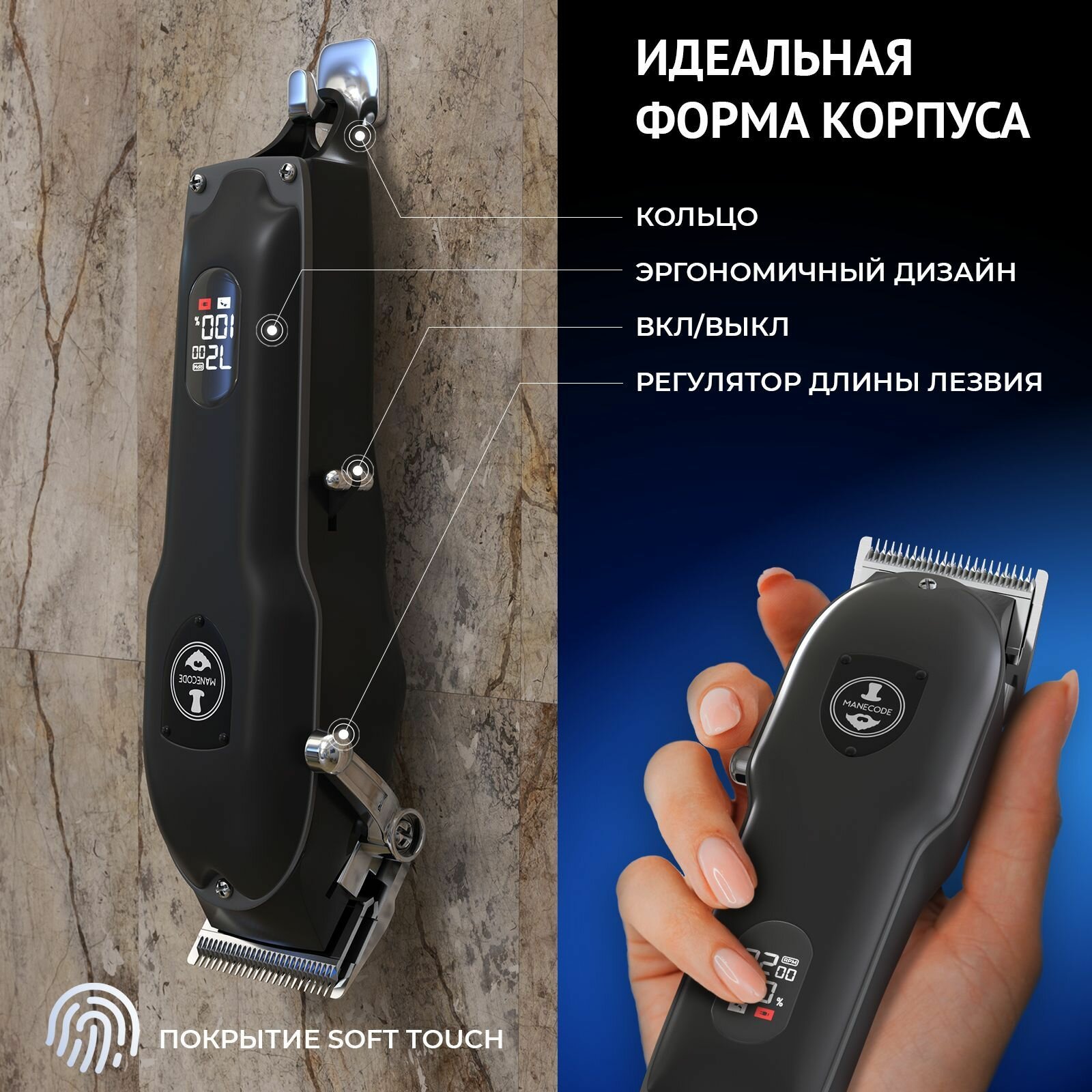 Машинка для стрижки волос Manecode EXCALIBUR c 10 насадками от 0,5 до 25 мм и зарядной станцией - Профессиональные твердосплавные самозатачивающиеся регулируемые лезвия - Фирменный фартук в комплекте интересное: