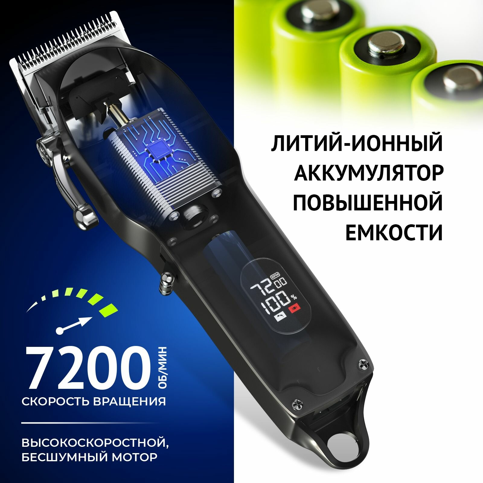 Купить Машинка для стрижки волос Manecode EXCALIBUR c 10 насадками от 0,5 до 25 мм и зарядной станцией - Профессиональные твердосплавные самозатачивающиеся регулируемые лезвия - Фирменный фартук в комплекте