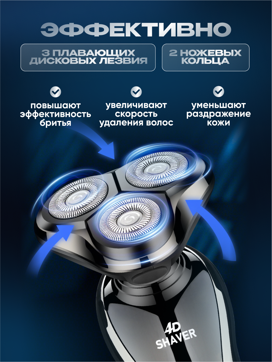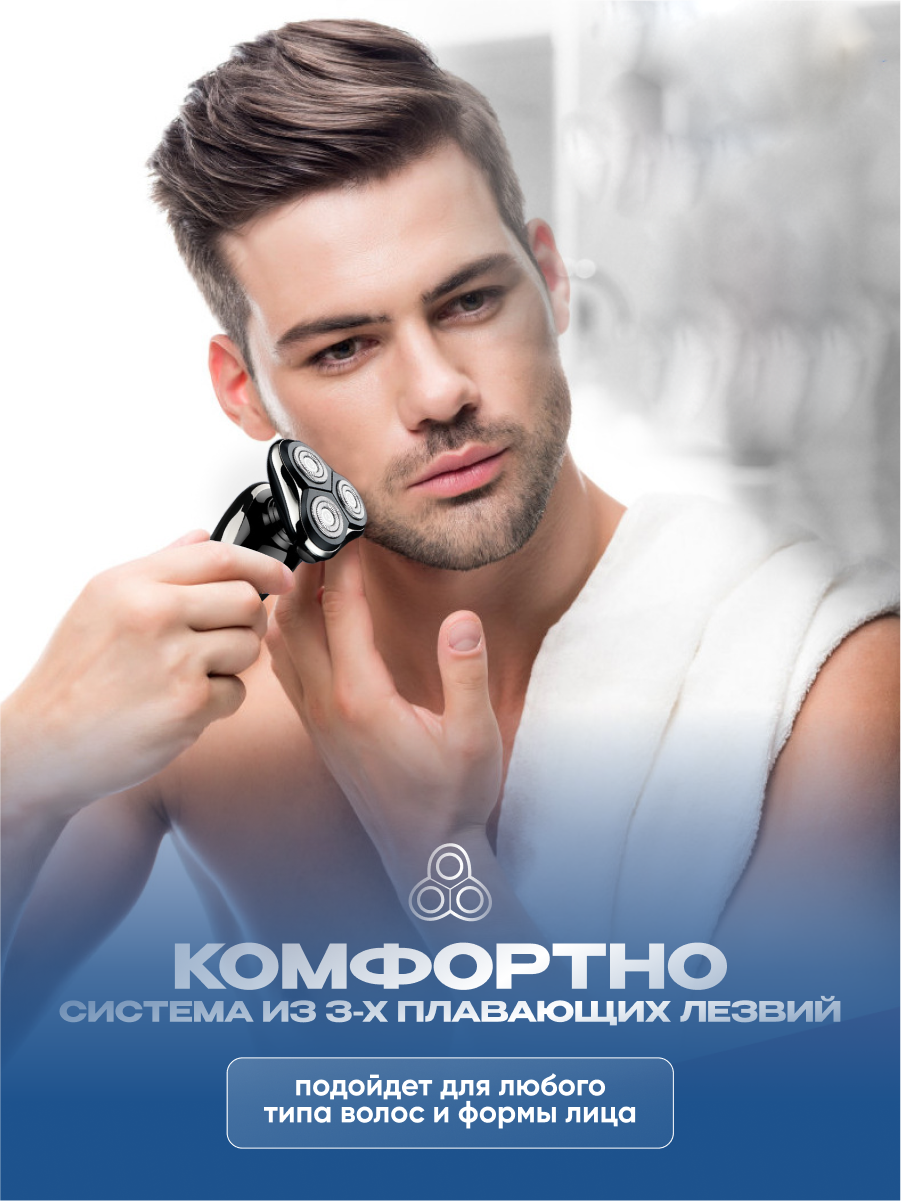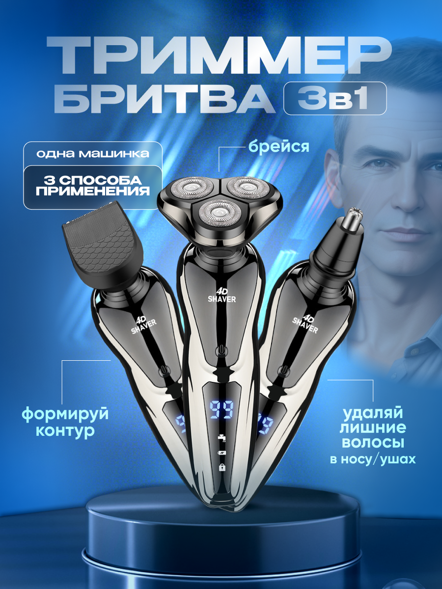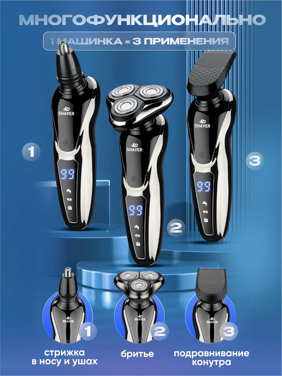 Триммер для бороды носа, усов 3в1. Электробритва для лица и тела Navisa серый интересное:
