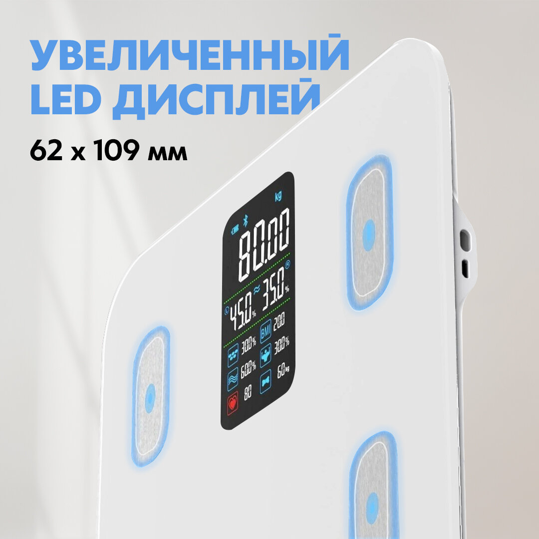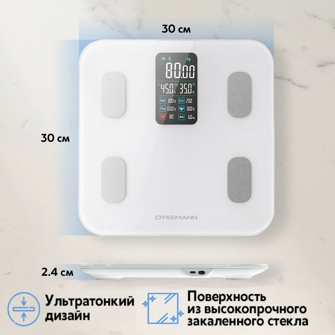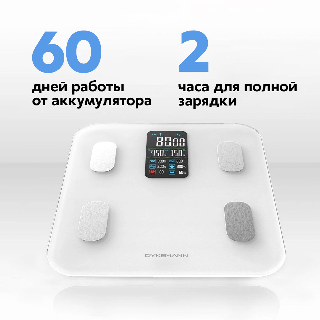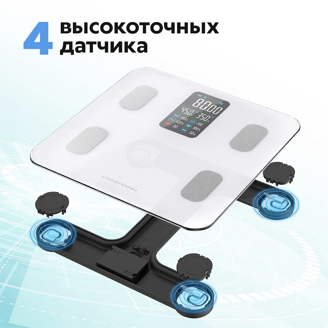 Умные напольные весы для тела электрические с высокоточными датчиками/диагностические с функцией измерения 16 параметров/синхронизация Bluetooth/макс. вес 180 кг Dykemann Smartwaage NP-16 White интересное: