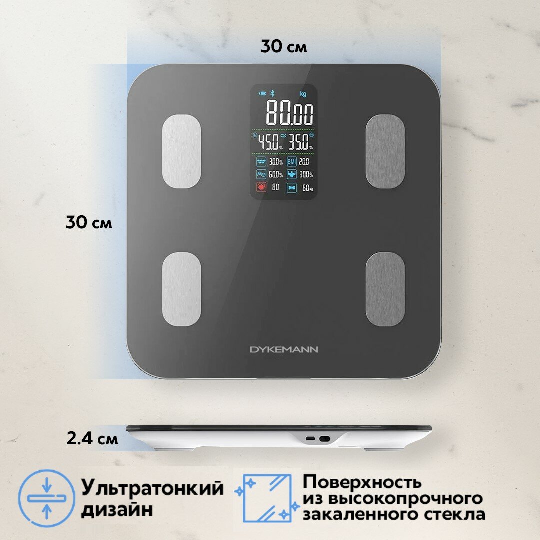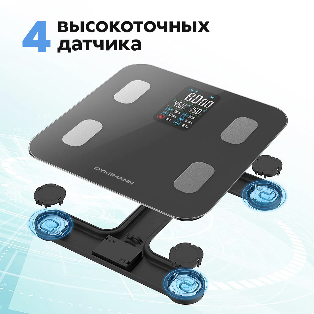 Умные напольные весы для тела электрические, диагностические измерение 16 параметров/макс. вес 180 кг Dykemann Smartwaage NP-16 Black интересное: