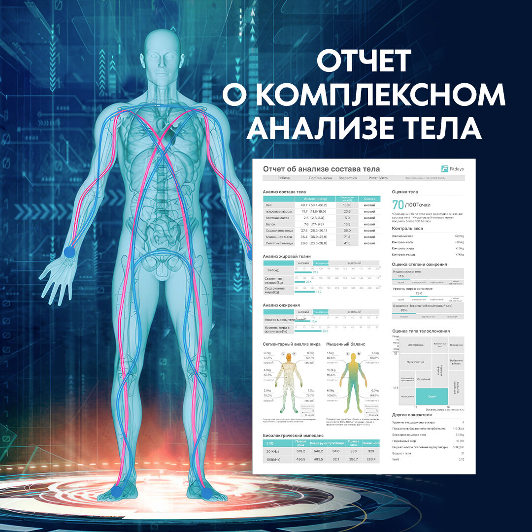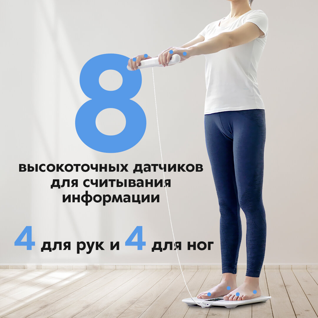 | Дополнительная информация | Измерения параметров тела: Биологический возраст, Вес, Жировая масса, Индекс массы тела, Костная масса, Метаболизм, Мышечная масса, Основной обмен веществ (BMR), Скелетные мышцы, Содержание воды, Тип телосложения, Измерение белка, Базальный метаболизм, Висцеральный жир |