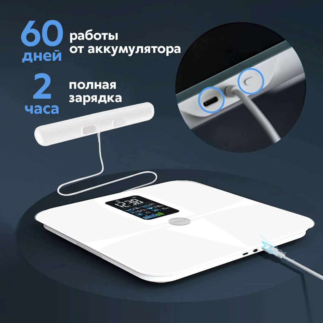 Умные напольные весы для тела электрические с высокоточными датчиками/диагностические с функцией измерения 20 параметров/синхронизация Bluetooth/макс. вес 180 кг Dykemann Smartwaage NP-20 White интересное: