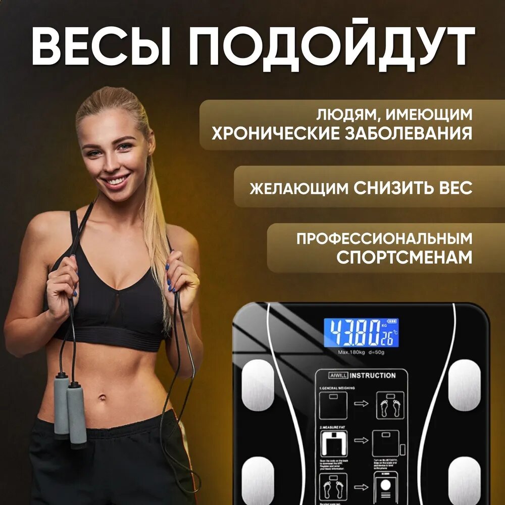 Умные напольные весы с определением доли воды и жировой ткани черные интересное: