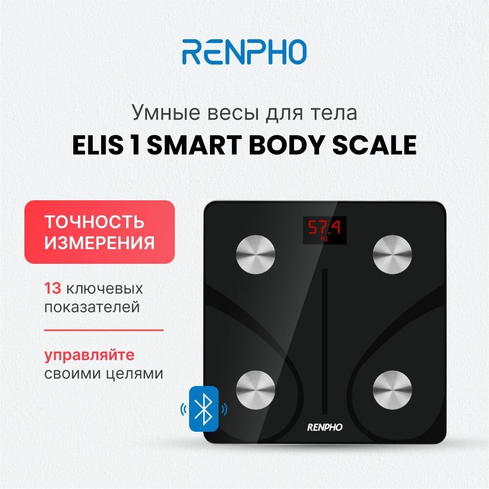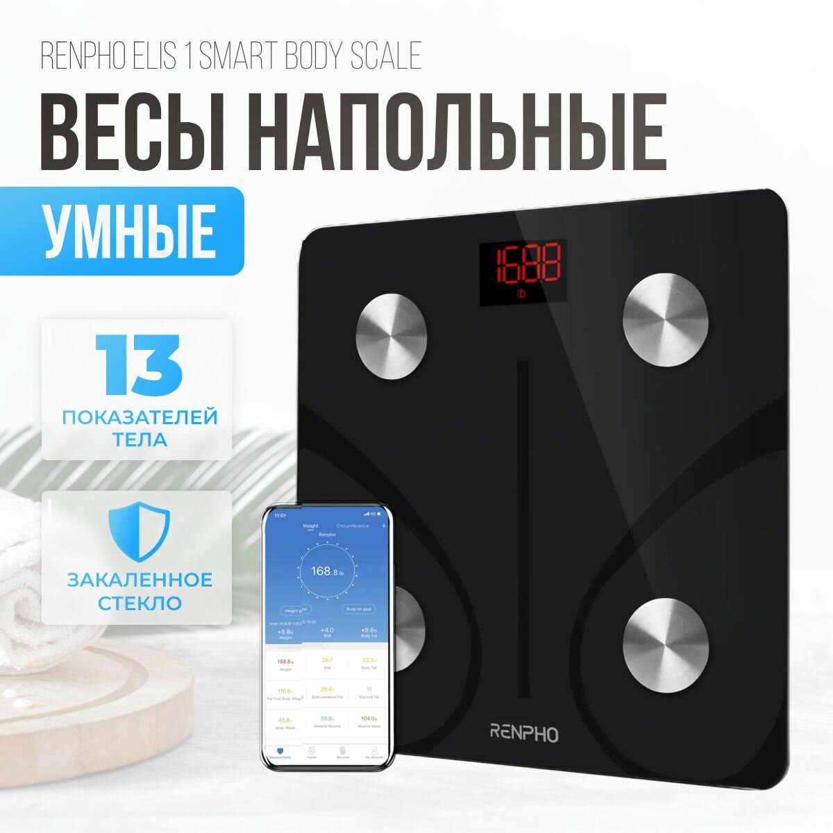 Купить Весы напольные умные Renpho Elis 1 ES-CS20M стеклянные, с bluetooth и функцией анализа 13 показателей тела, до 180 кг, черные