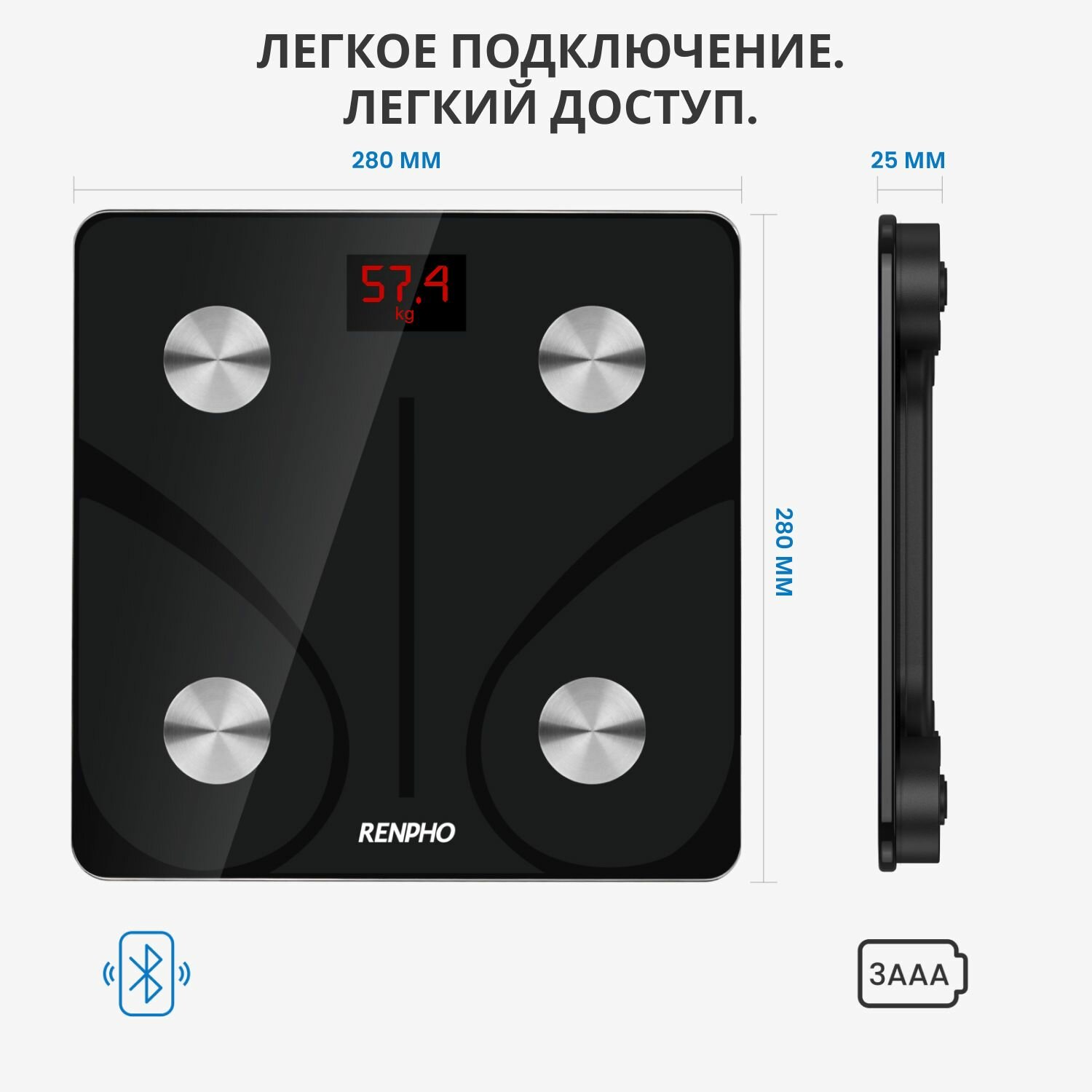 Весы напольные электронные RENPHO Elis Aspire - Smart WiFi Body Scale ES-WBE28 умные с диагностикой 13 показателей, черные