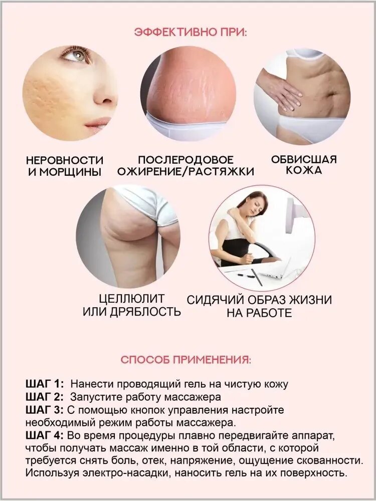 Антицеллюлитный микротоковый массажер для лица и тела "SKINCARE OPTIONS" интересное: