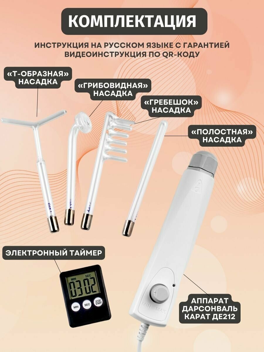 Дарсонваль Карат ДЕ-212 для волос, тела, лица, шеи, ног/аппарат/массажер импульсный 4 насадок интересное: