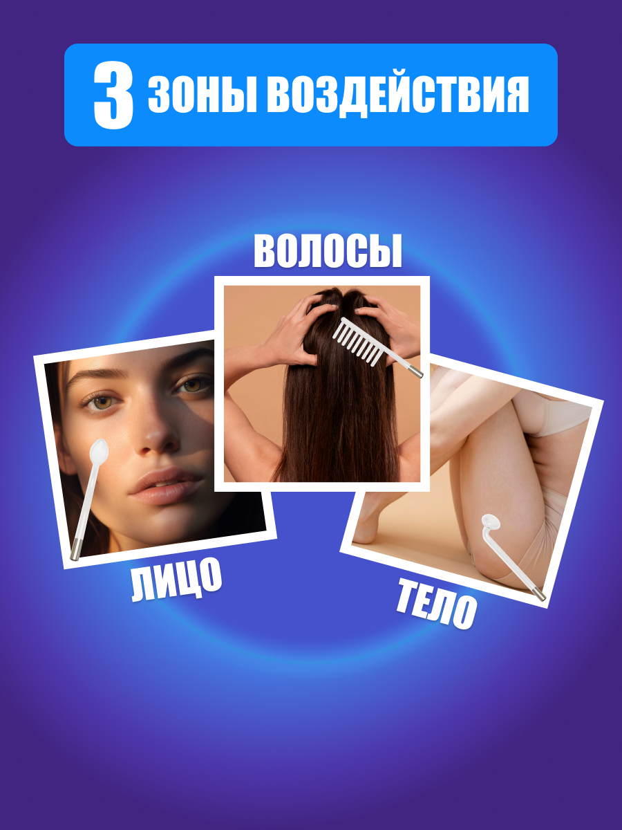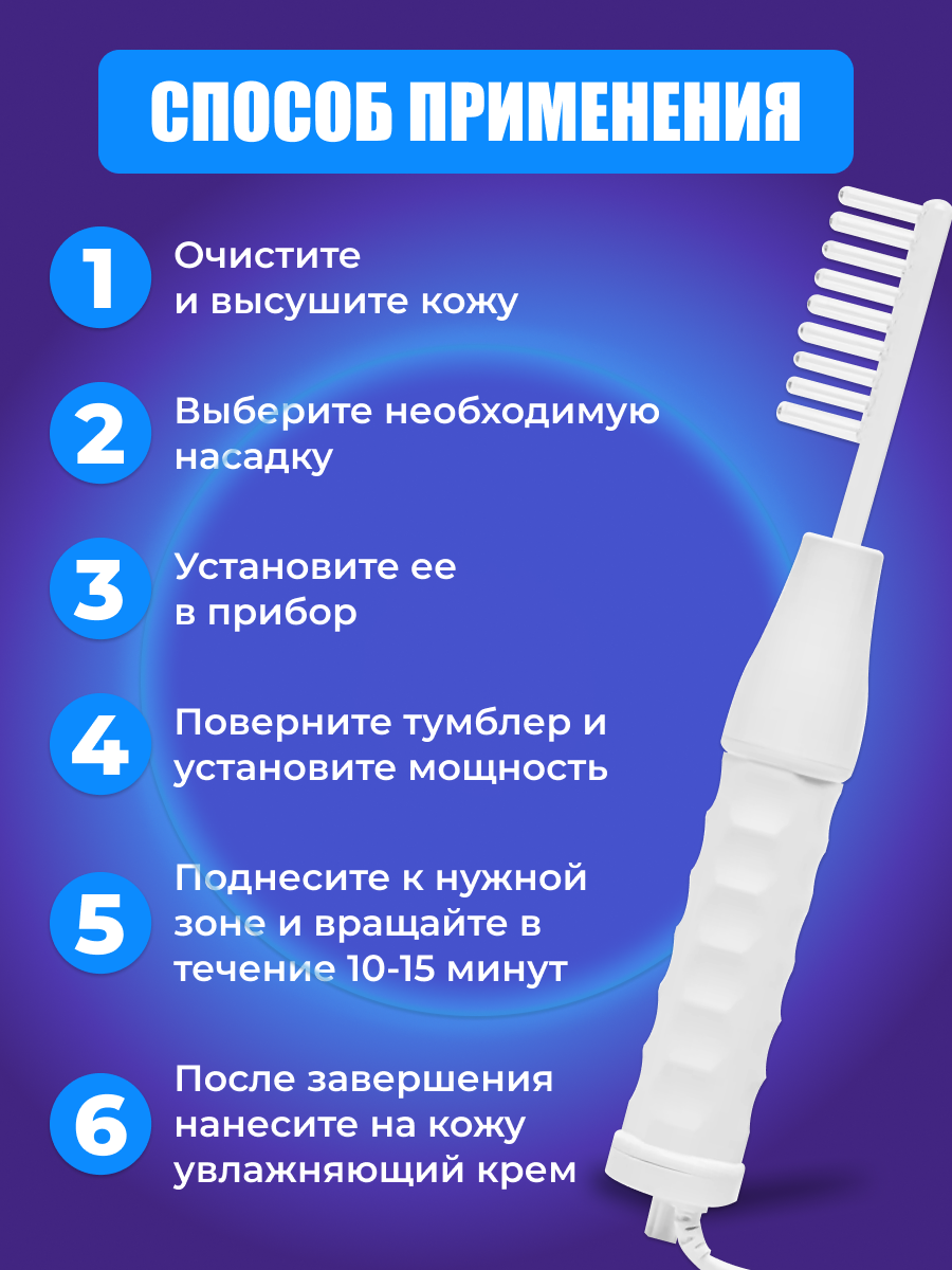 | Принцип работы | дарсонвализация / ионизация / микротоки / миостимуляция |