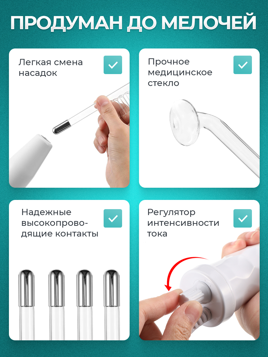 Дарсонваль Gezatone BP-7000, 5 насадок, для лица, тела и волос, бирюзовый