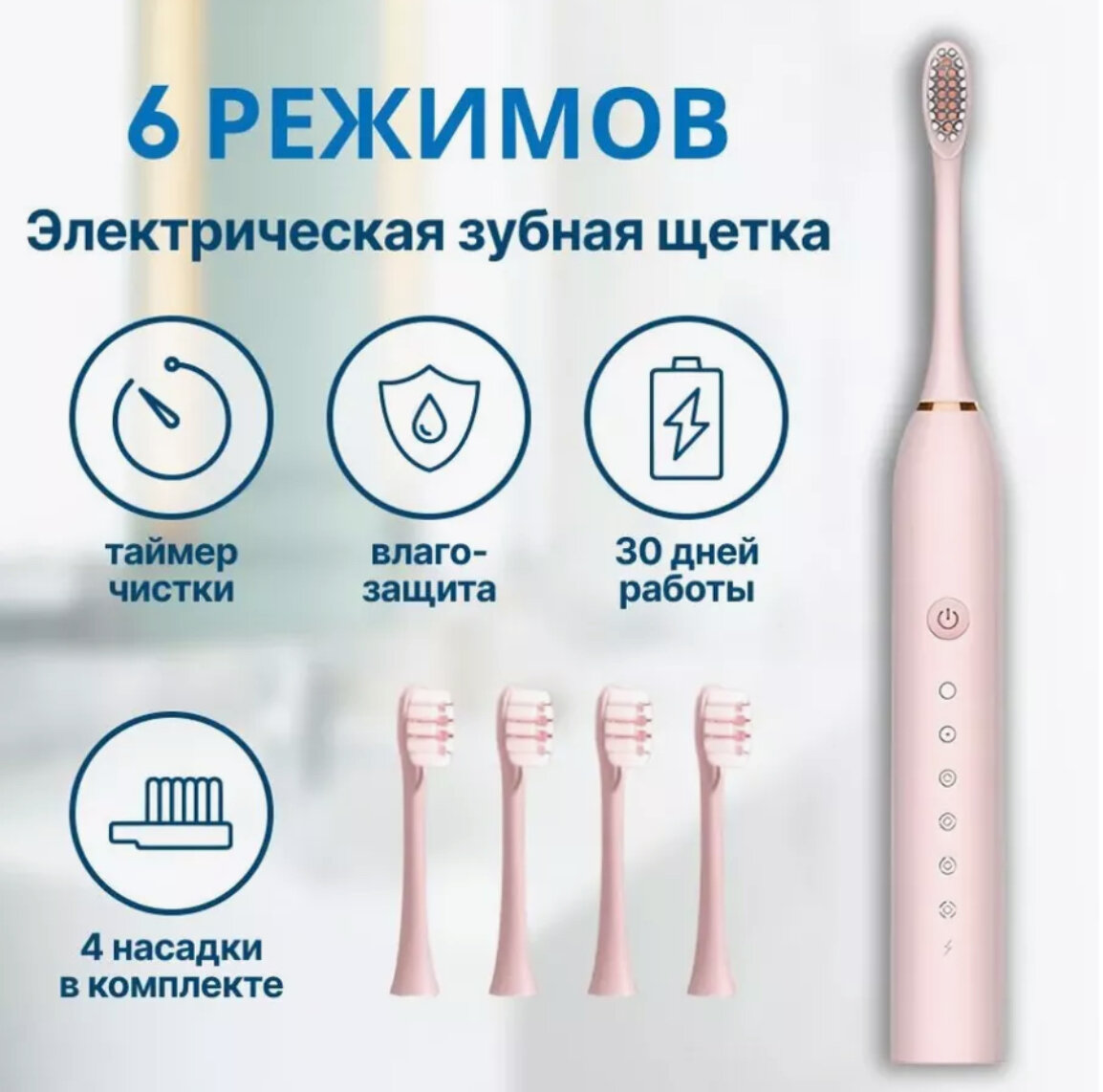 Электрическая зубная щетка с 4 насадками и 6 уникальными режимами для взрослых и детей, цвет розова интересное: