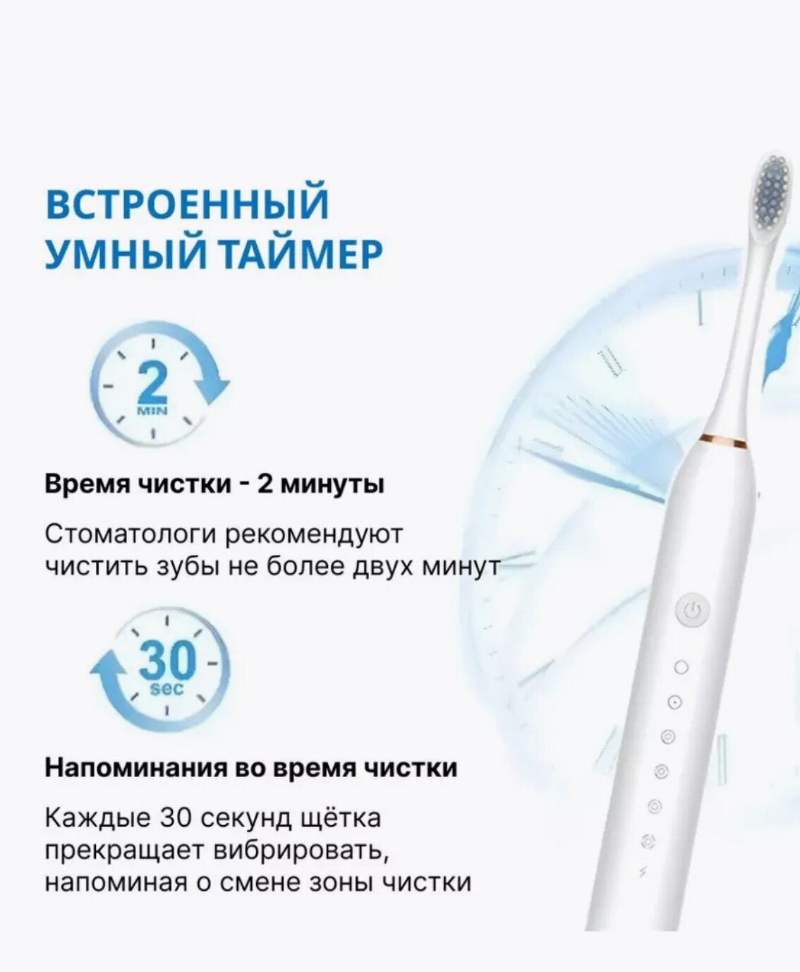 | Дополнительная информация | подходит для детей, таймер времени чистки, таймер смены области чистки |