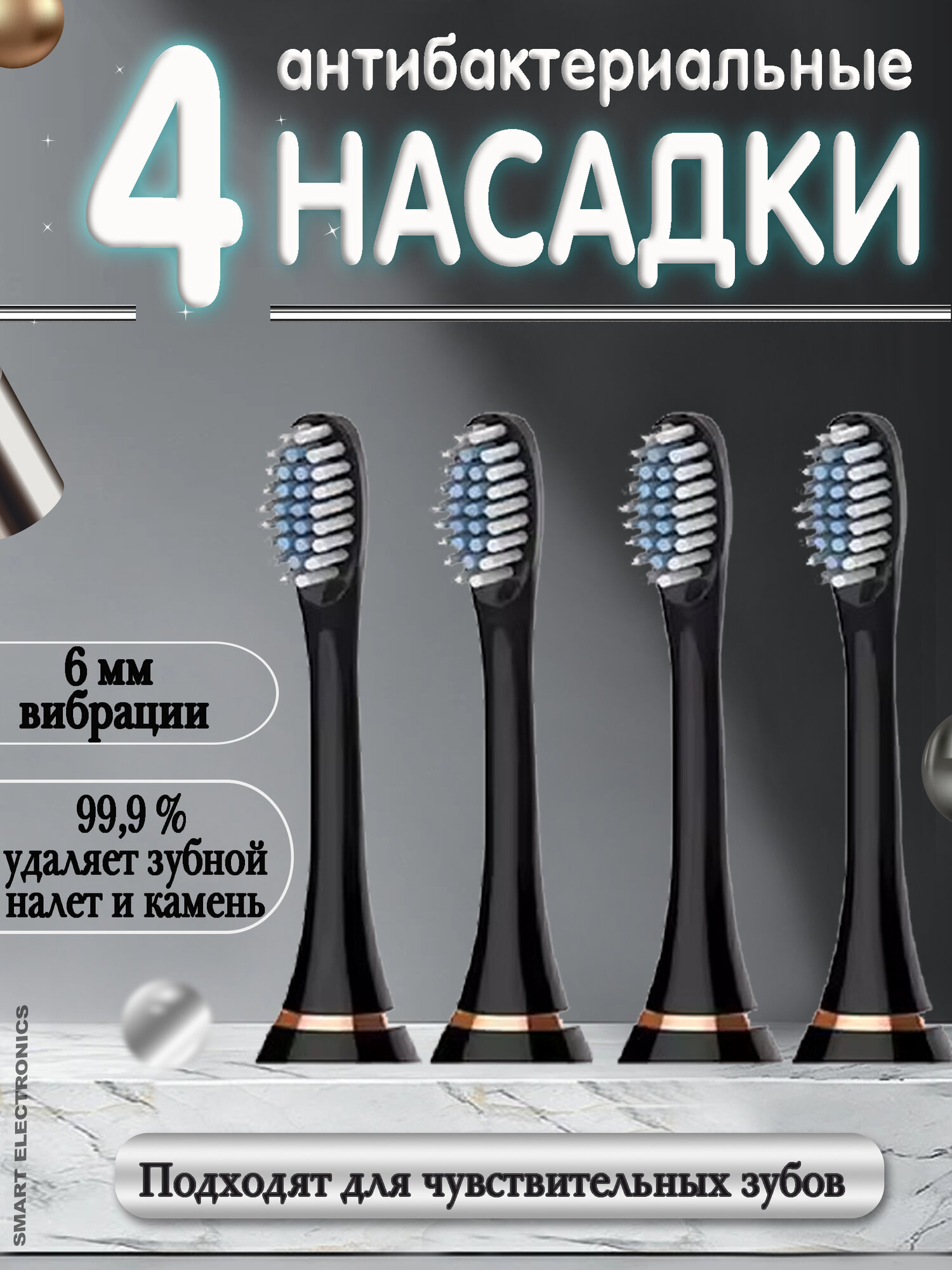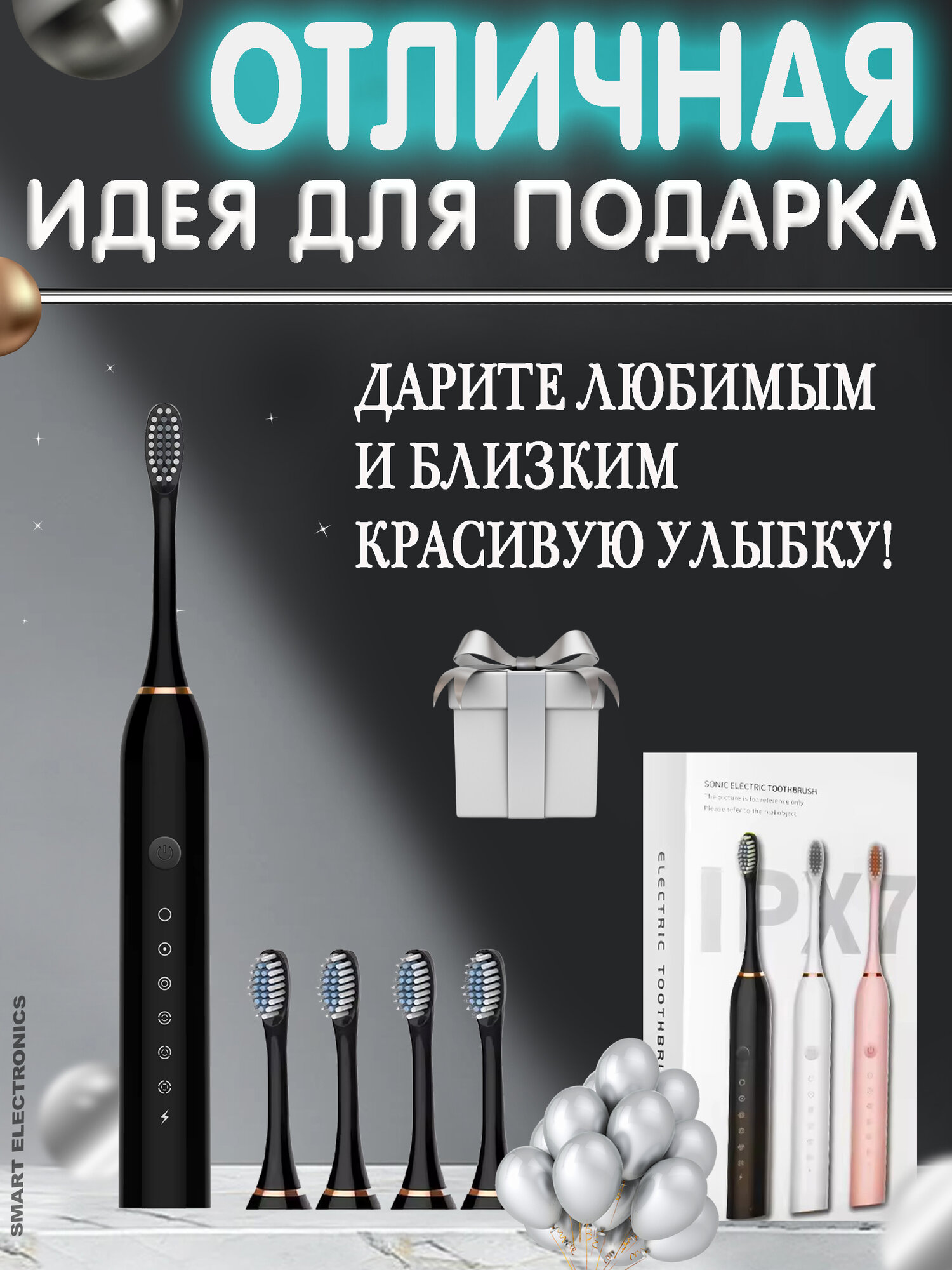 Купить Зубная щетка электрическая, звуковая электрощетка, с зарядкой и насадками, для взрослых и детей, черный