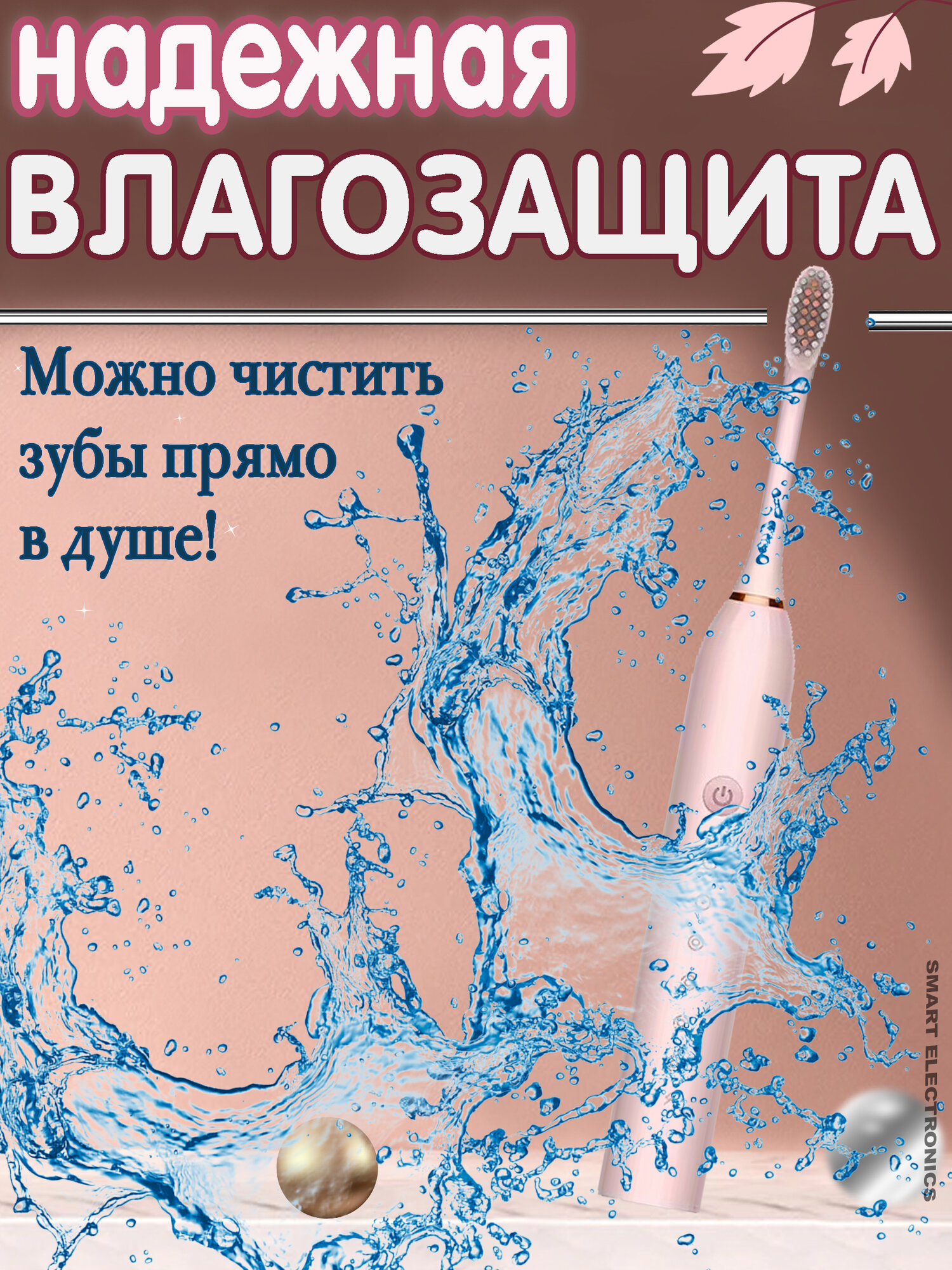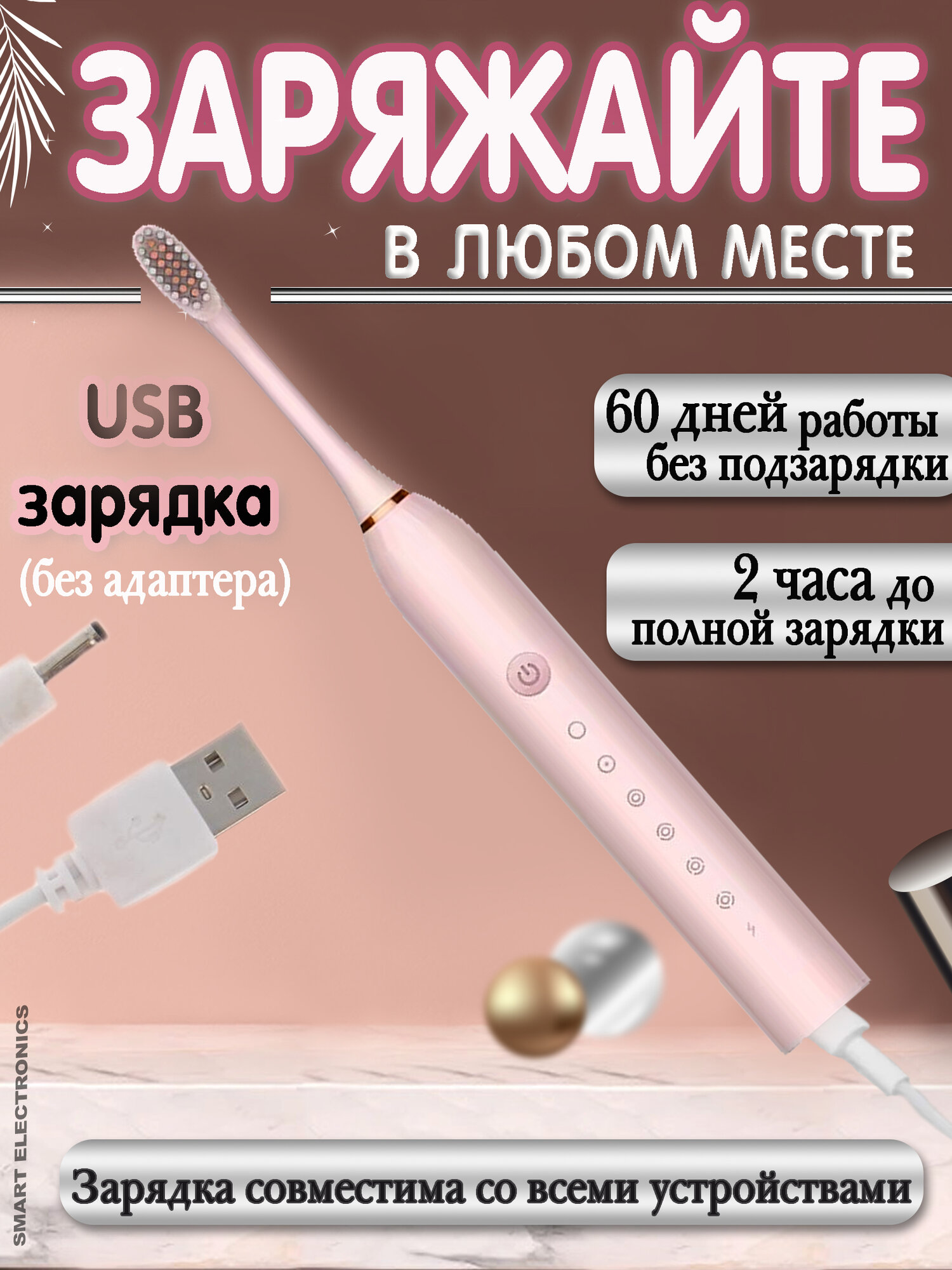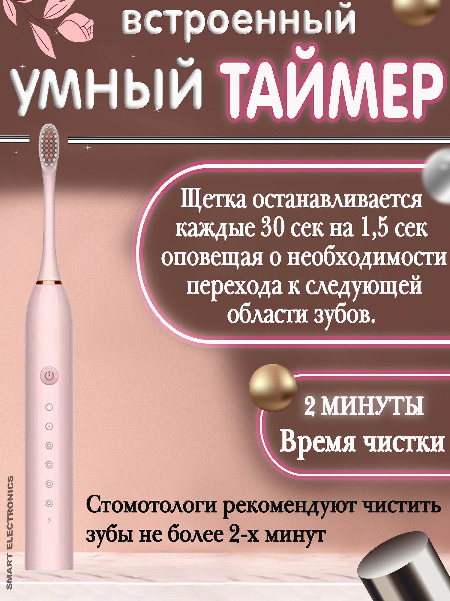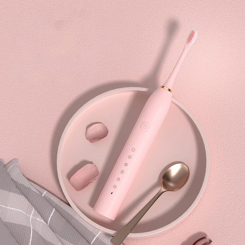 Купить Зубная щетка электрическая, звуковая электрощетка, с зарядкой и насадками, для взрослых и детей, розовый