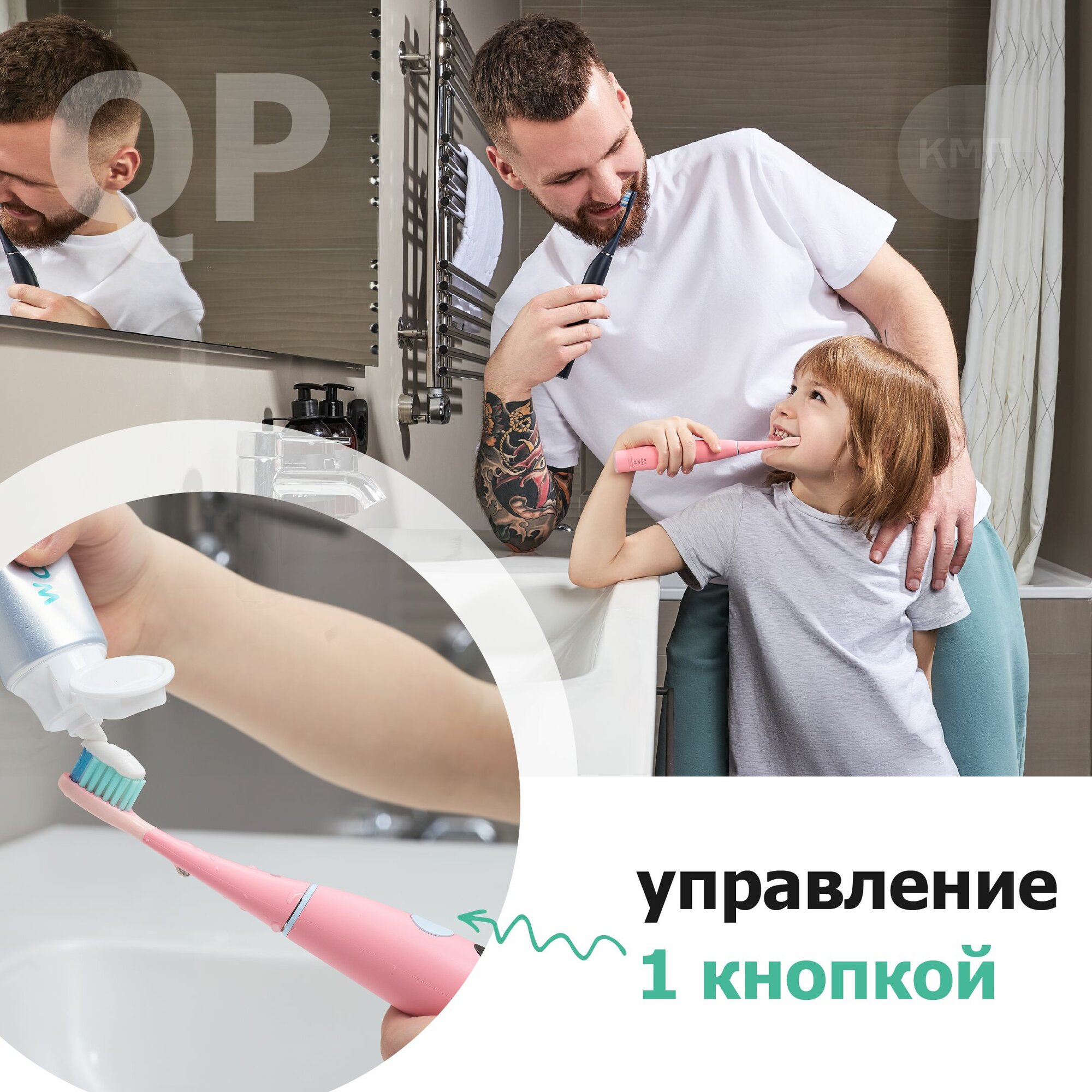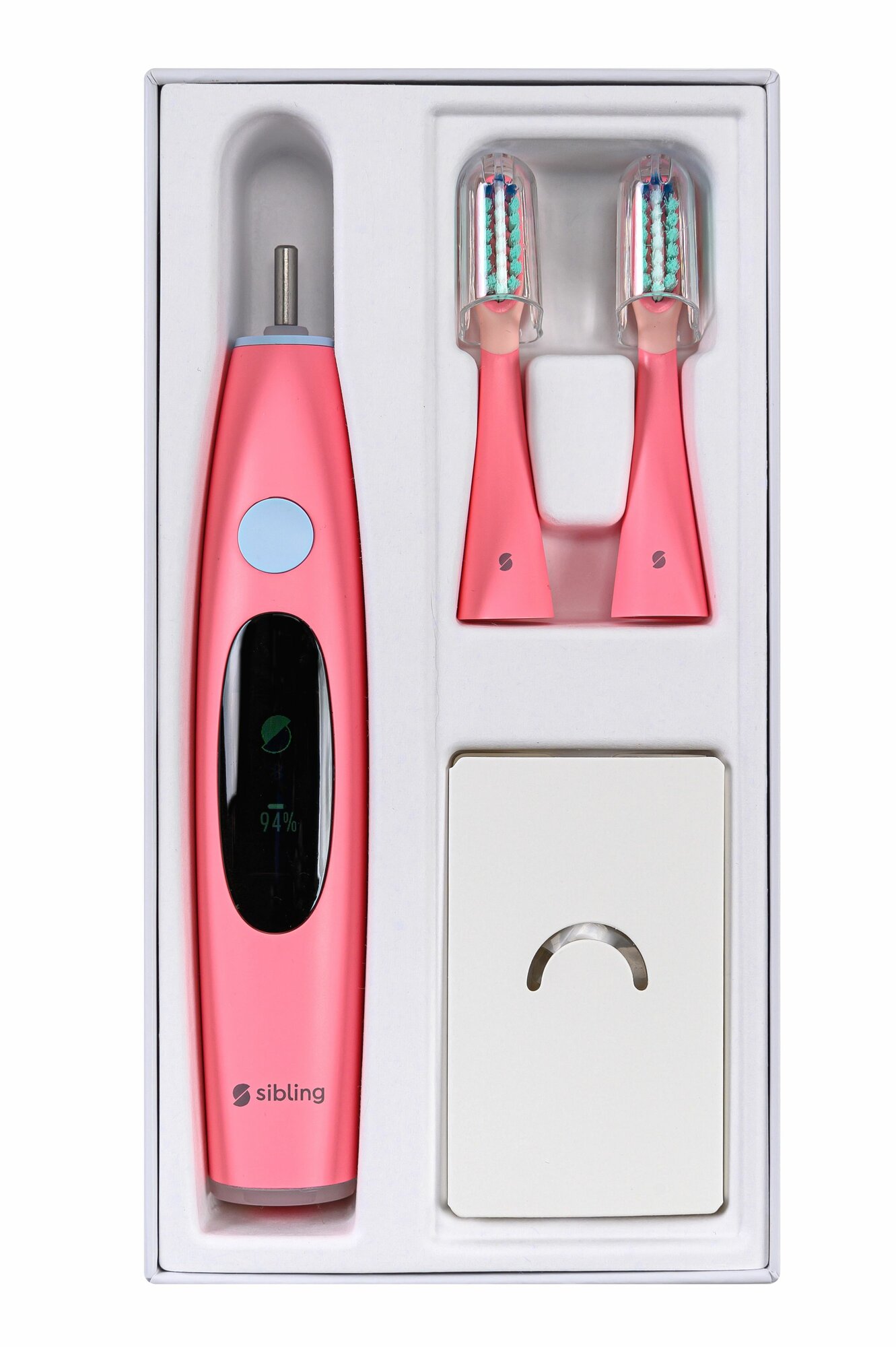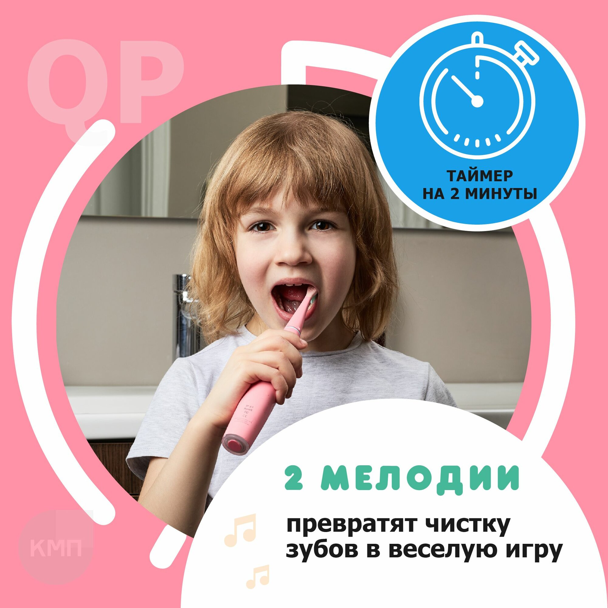Умная детская ультразвуковая зубная щетка Sibling Powerbrush-QP розовая; электрическая щетка для девочки