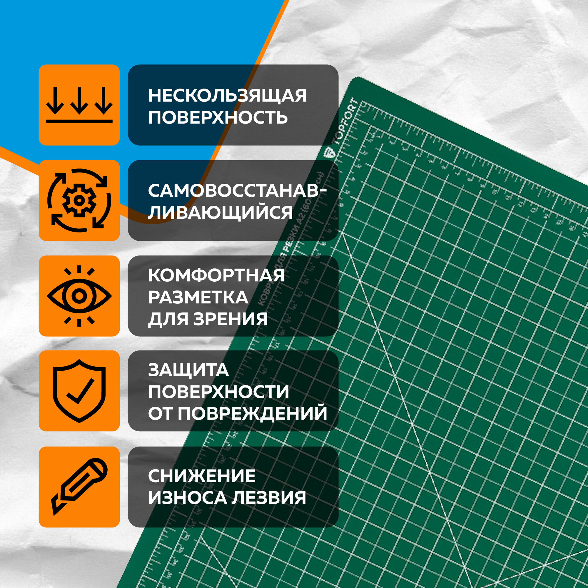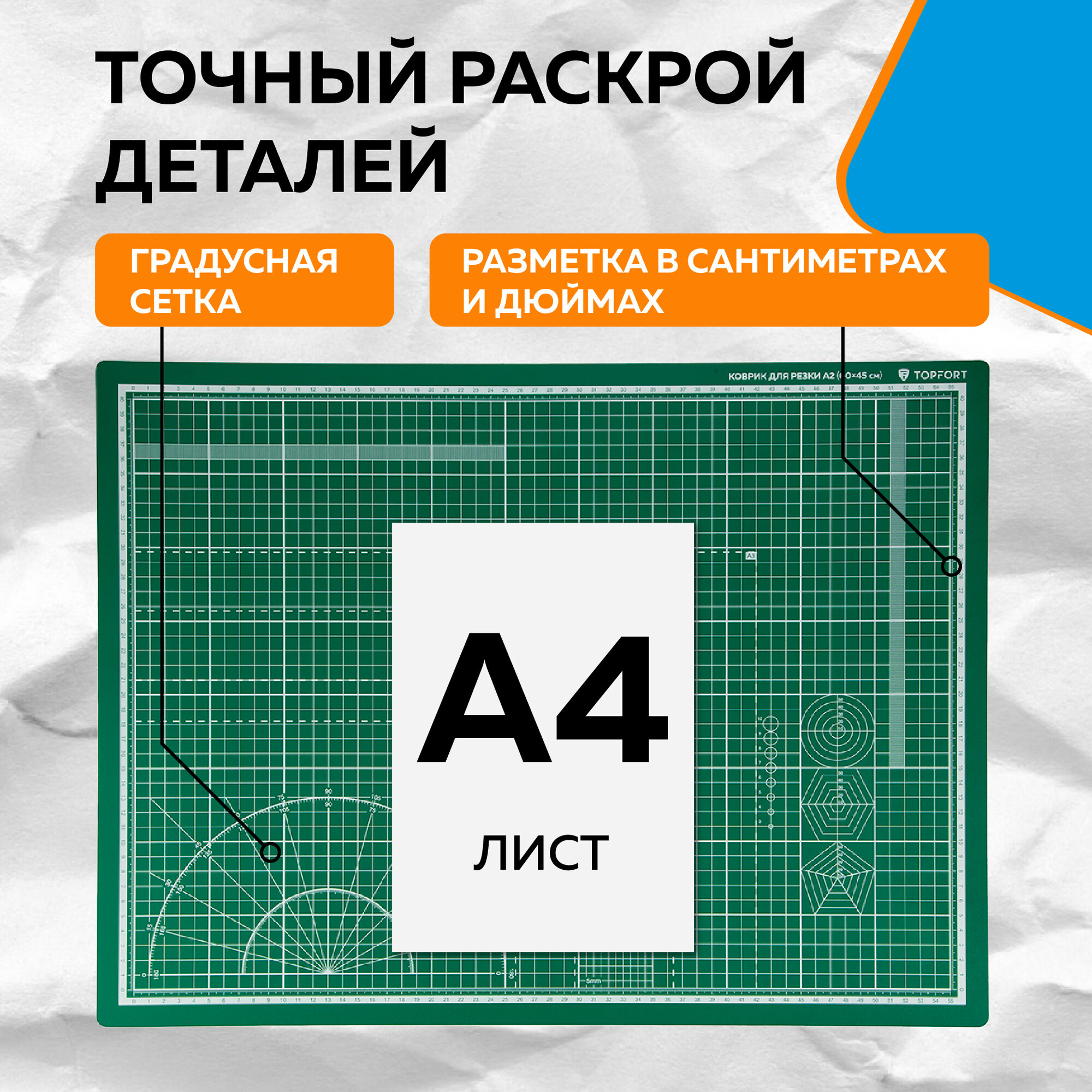 Коврик для резки TOPFORT, мат для резки, двухсторонний, А2, 3 мм интересное: