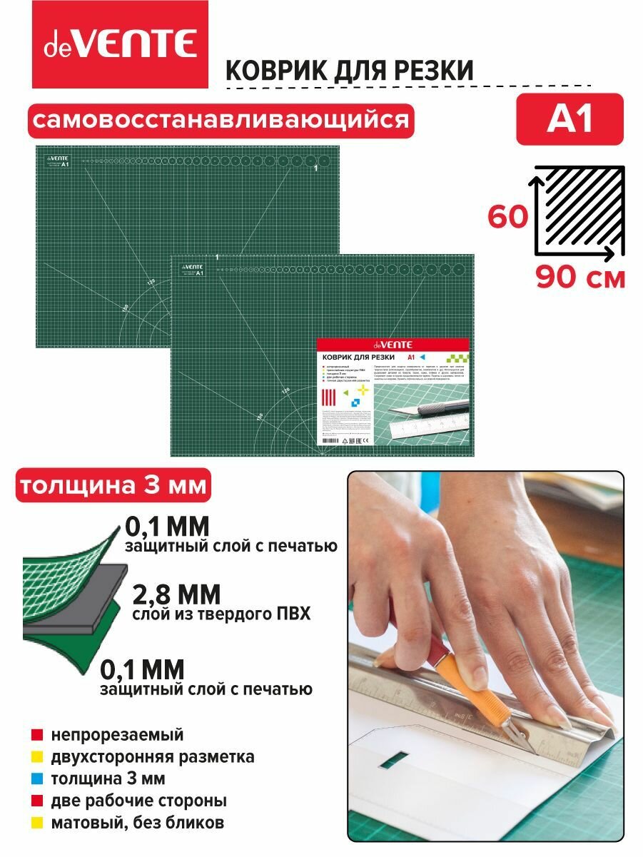 Коврик для резки A1 deVENTE непрорезаемый 3 мм двусторон 3-слойный 4200906 5114338 интересное:
