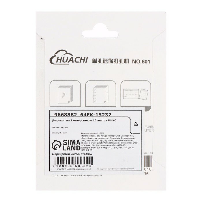 Дырокол на 1 отверстие, до 10 листов, металлический, микс интересное: