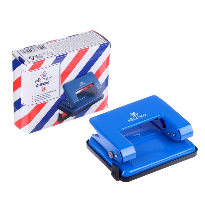 Дырокол металлический 20 листов, Attomex, форматная линейка, синий интересное: