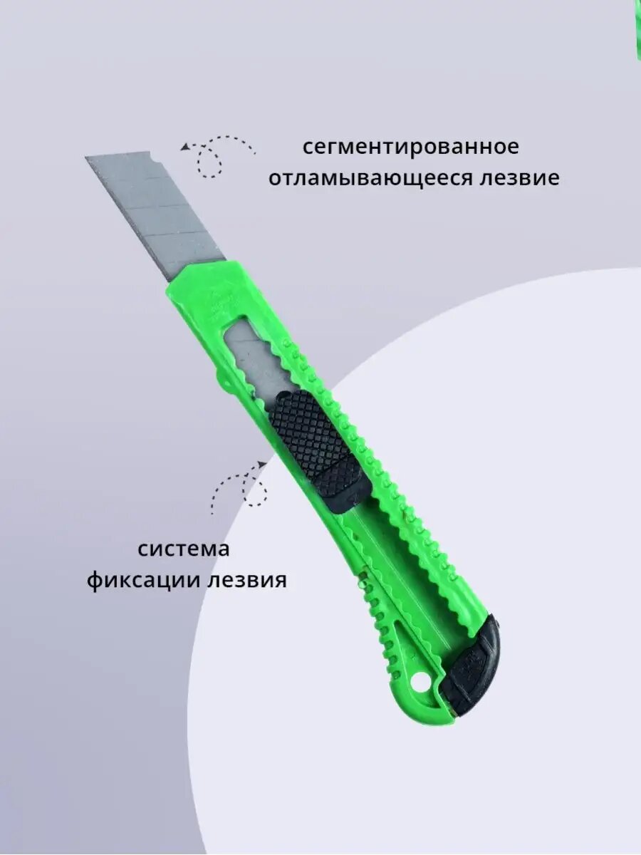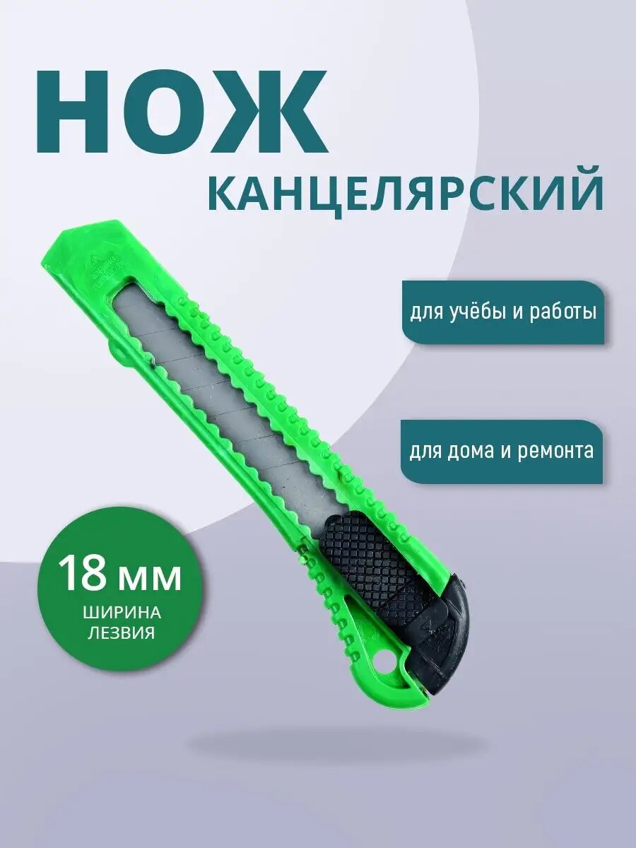 Канцелярский нож строительный для резки бумаги 18 мм, цвет зеленый интересное: