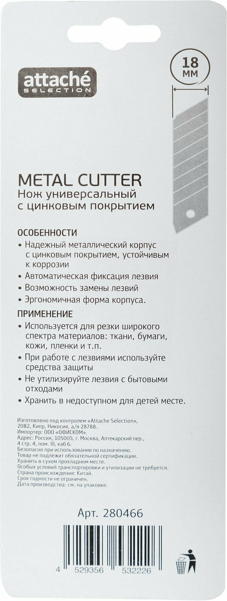 Купить Нож канцелярский Attache универсальный, B лезвия 18 мм, металлический корпус с цинковым покрытием