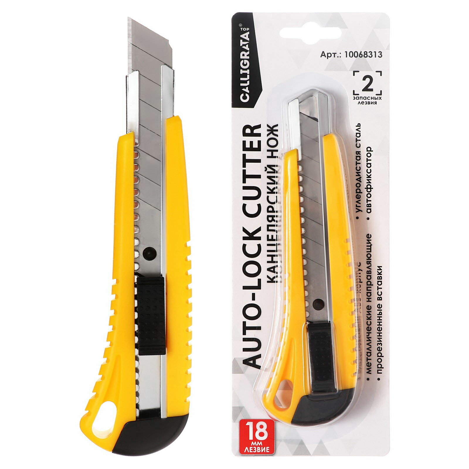 Нож канцелярский Calligrata TOP, 18 мм, пластиковый, с фиксатором, прорезиненный, 1 шт