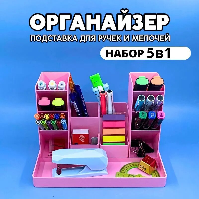СохранитьОрганайзер подставка для канцелярии, ручек, карандашей и мелочей CANBI, розовый интересное: