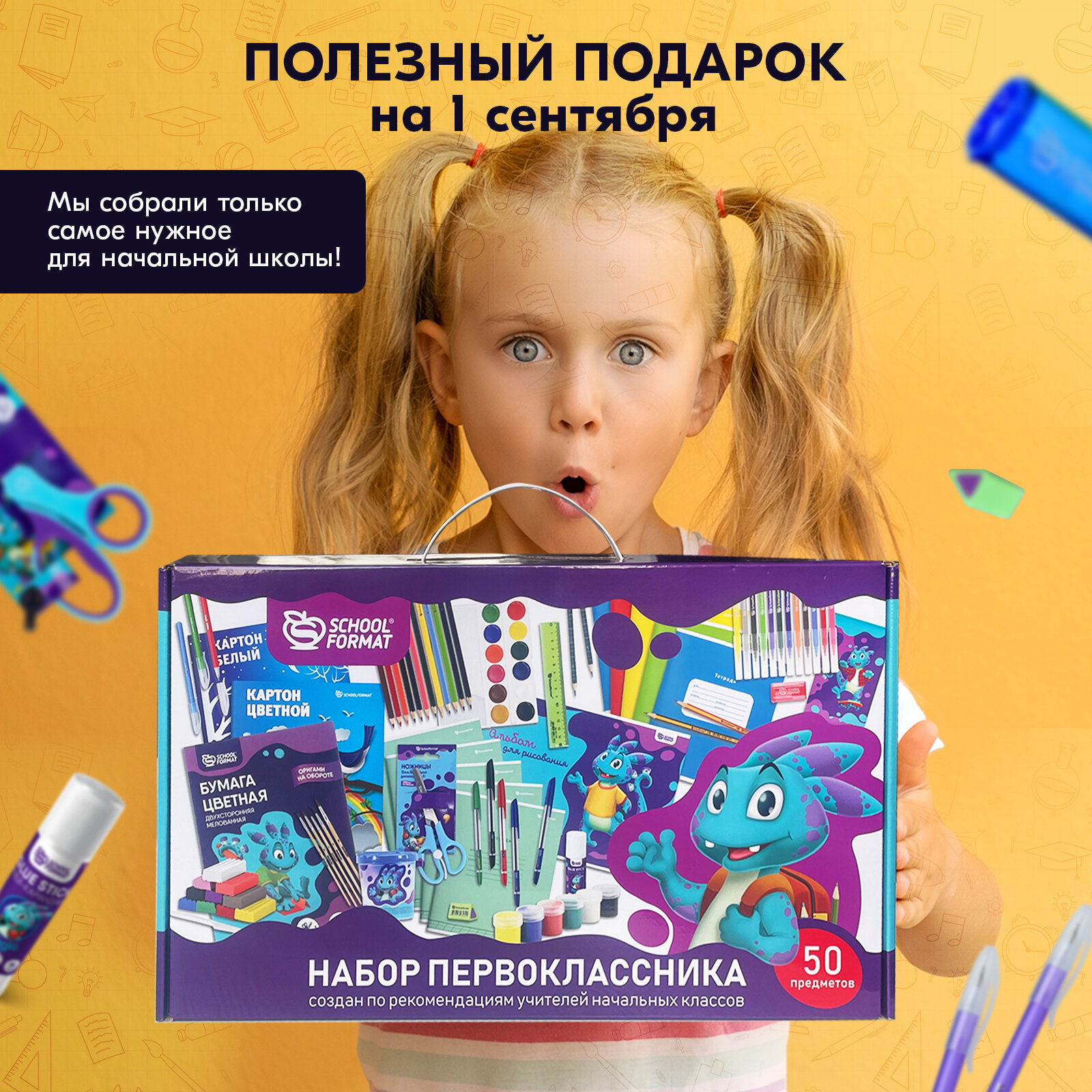 Набор первоклассника в футляре портфель Schoolformat с наполнением 50 предметов интересное: