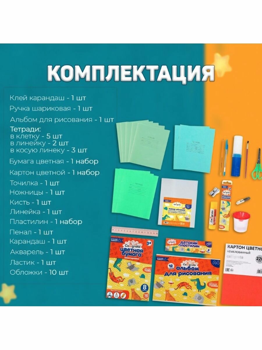 Набор первоклассника, 42 предмета, Calligrata, / Подарок на первое сентября / Школьные принадлежности 1-4 класс