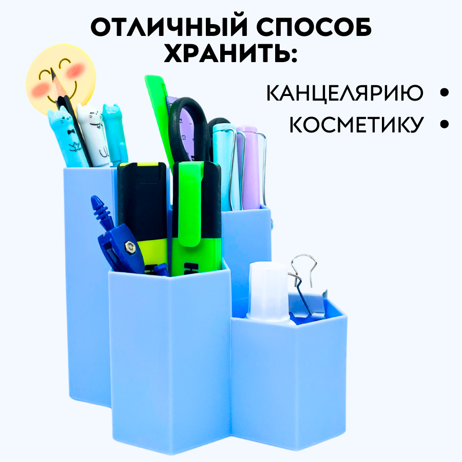 СохранитьОрганайзер для хранения канцелярии подставка для карандашей и ручек, 4 отделения, голубой интересное: