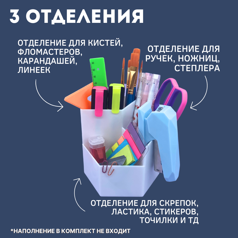 Органайзер для хранения канцелярии подставка для карандашей и ручек 6 отделений, белый