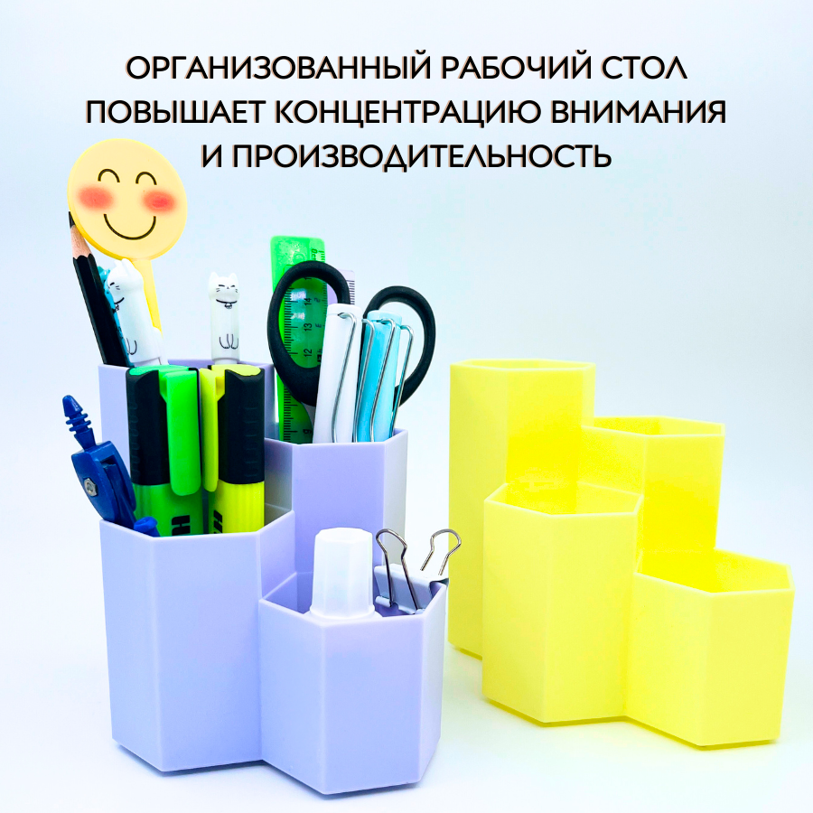 Органайзер для хранения канцелярии подставка для карандашей и ручек 6 отделений, желтый